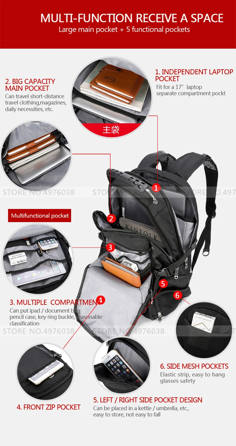 Oxford School Bags mochila Swiss 17 Inch Laptop Backpack Men USB Charging Waterproof Travel Backpack Women Rucksack Male Vintage