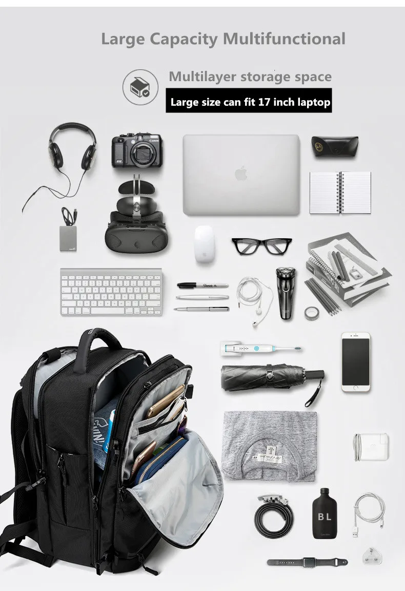 OZUKO Multifunction Men Backpack for 17 Inch Laptop Backpacks Waterproof USB Charging Travel Backpack Large Capacity Mochila