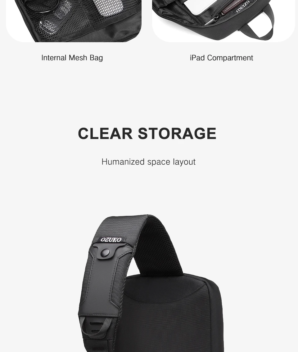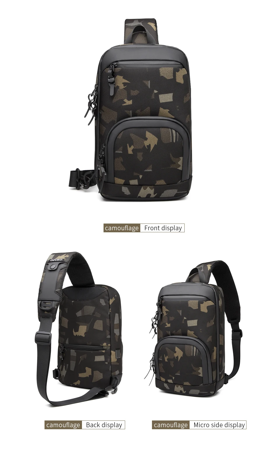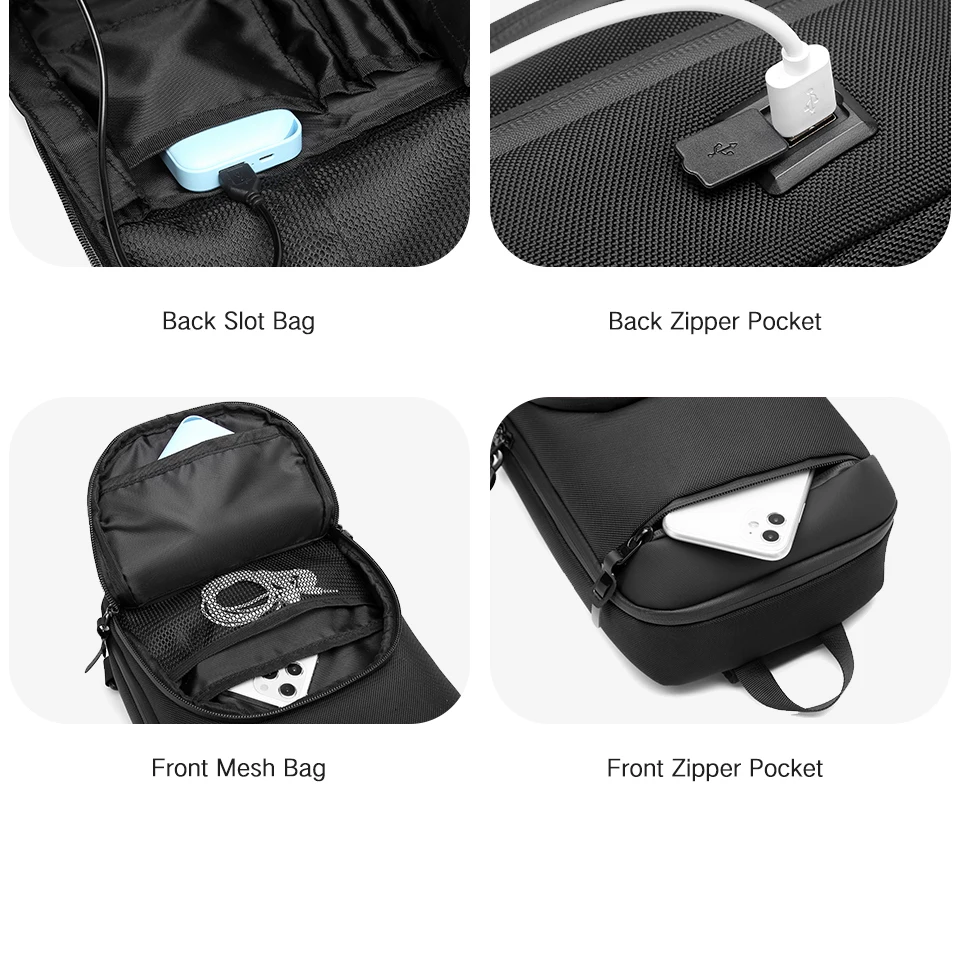 OZUKO Men's Shoulder Bags Waterproof Oxford Short Travel Messenger Bag Casual Chest Bag Quality Male USB Charging Crossbody Bag