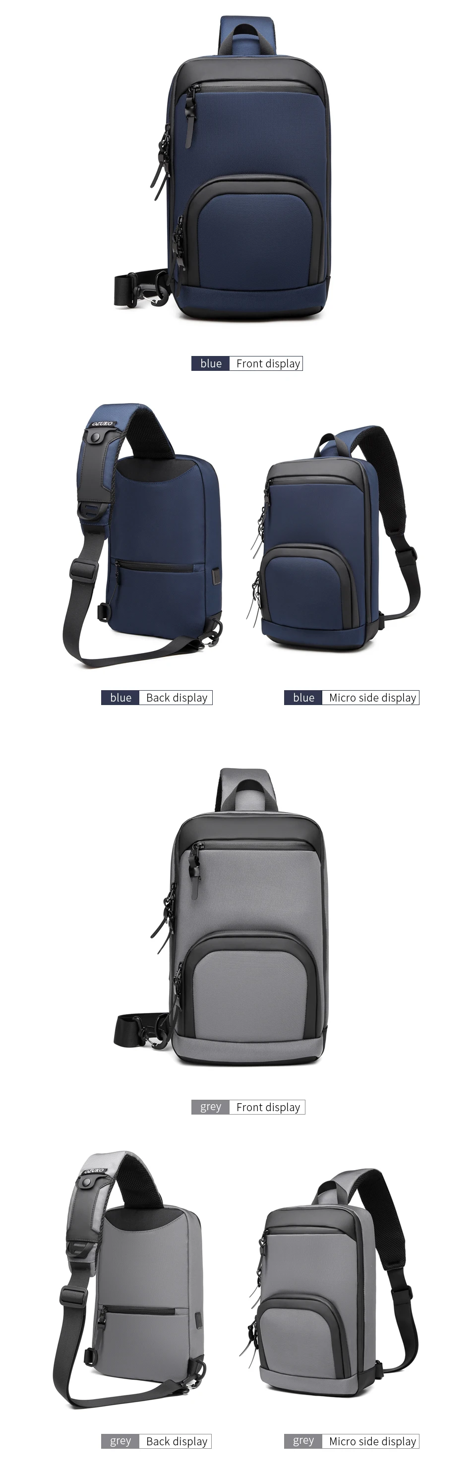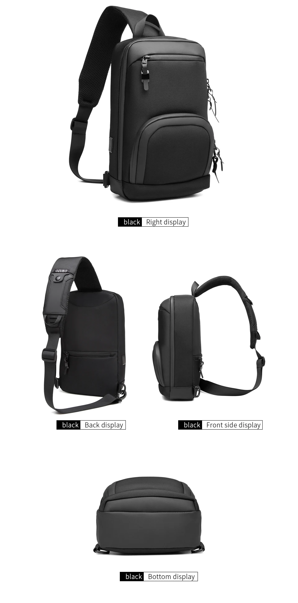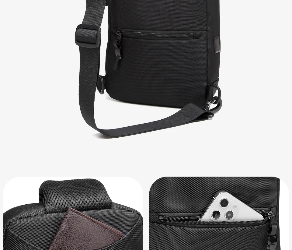 OZUKO Men's Shoulder Bags Waterproof Oxford Short Travel Messenger Bag Casual Chest Bag Quality Male USB Charging Crossbody Bag