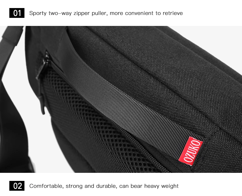 OZUKO Fashion Men Messenger Bag Multifunction Riding Crossbody Bags Male Waterproof Shoulder Bag USB Charging Travel Bag for Men