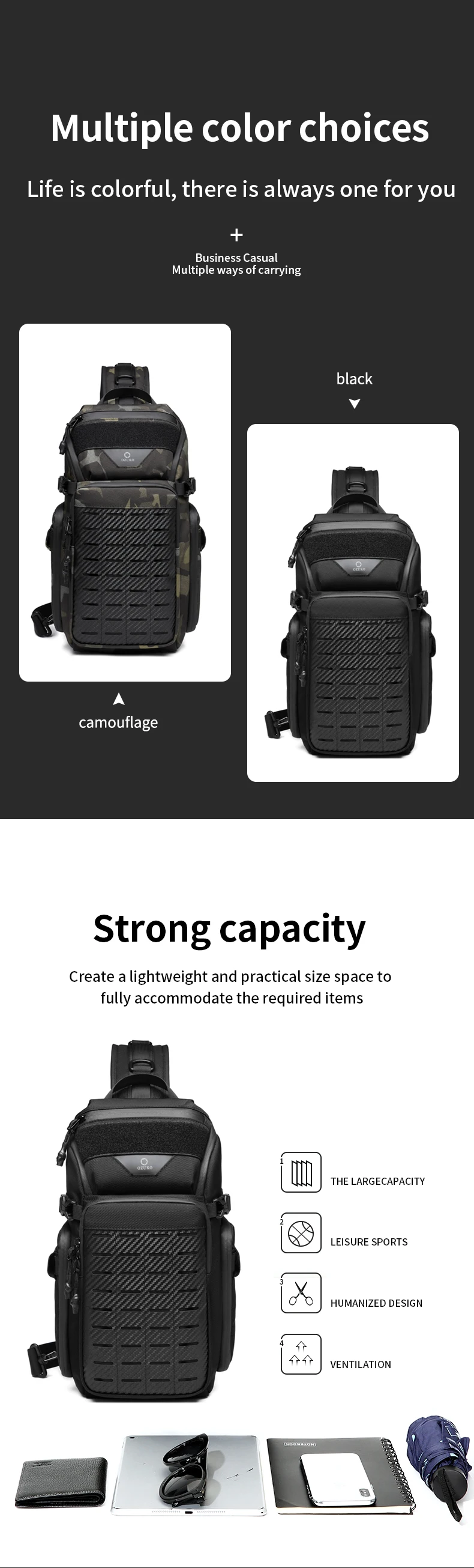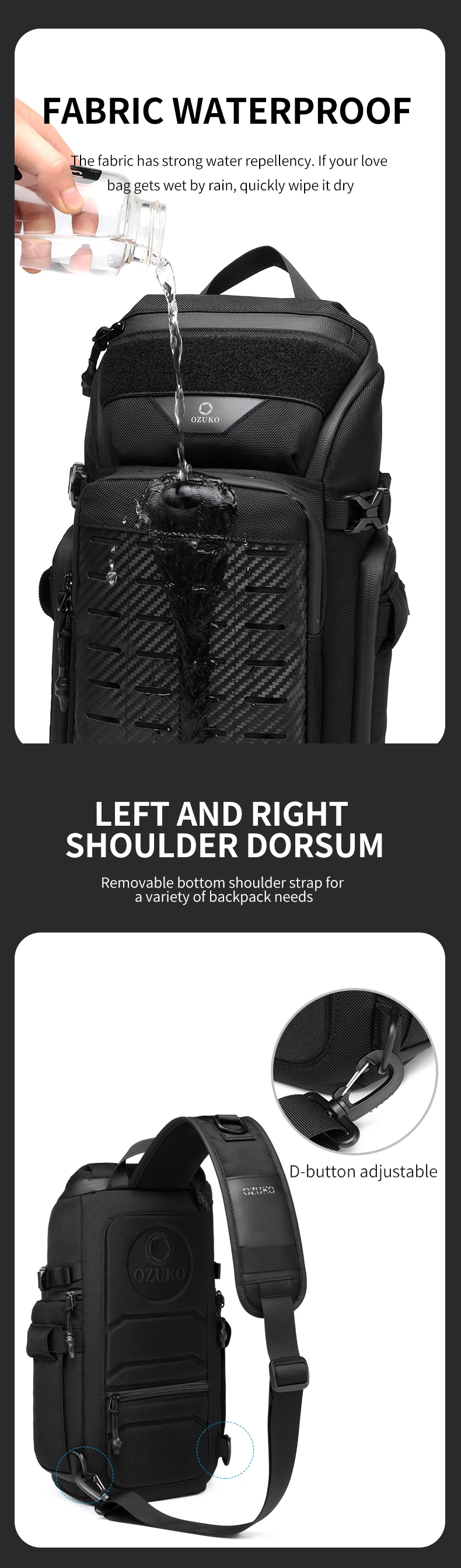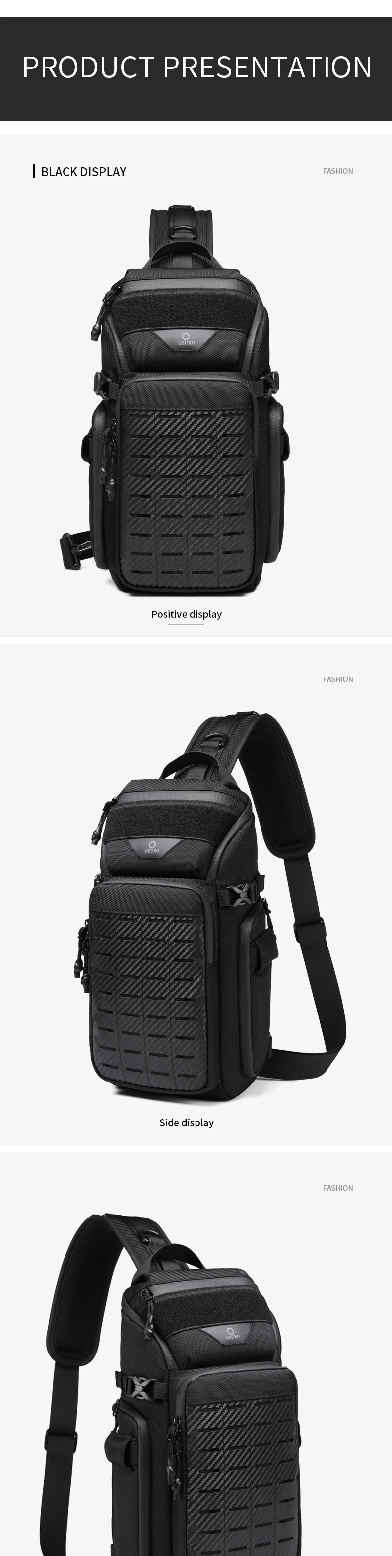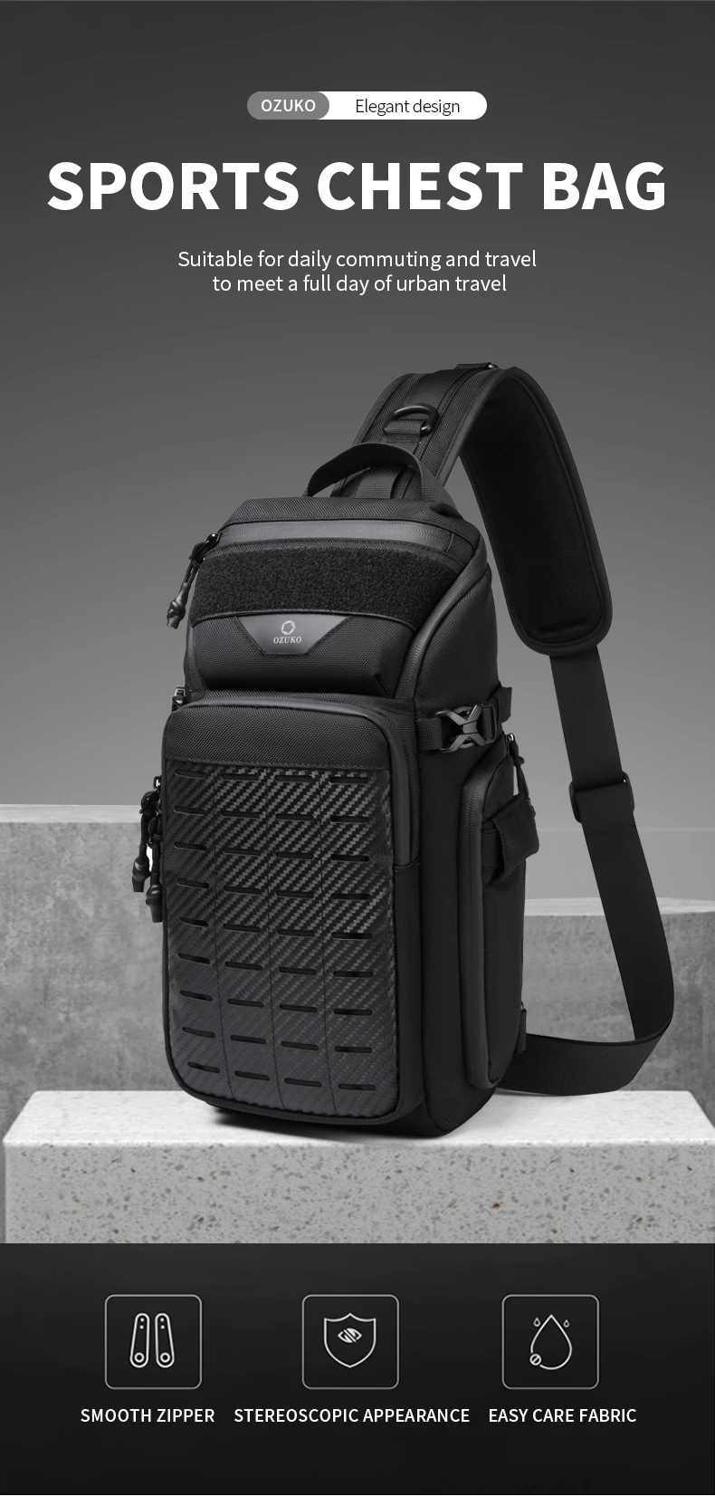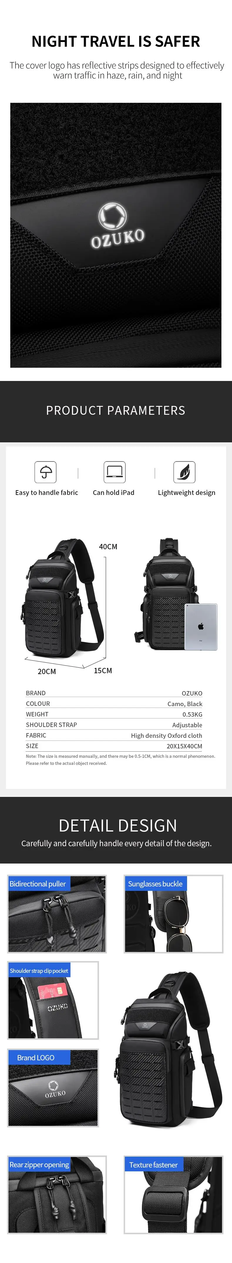 OZUKO Men Chest Bags Outdoor Sports Tactical Crossbody Sling Bags Male Waterproof Travel Multifunctional Shoulder Messenger Bag