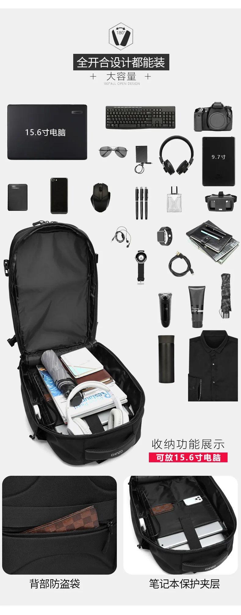 New Men's Backpack Business Leisure 15.6 Computer Bag Travel Sports Backpack
