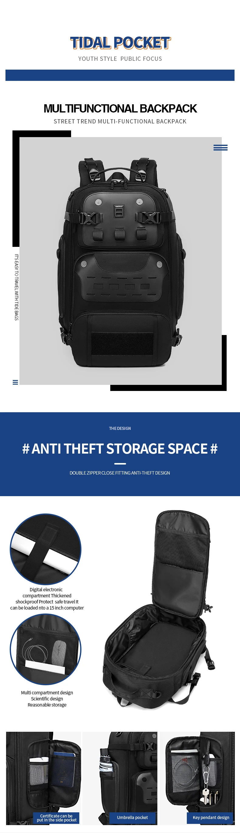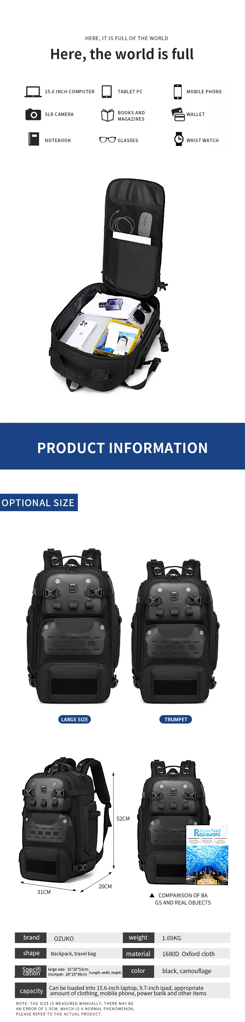 Ozuko Men Backpack Outdoor Travel Pack Male Luggage Multifunctional Backpack Large Waterproof 15.6Laptop Women Bag New Mochila