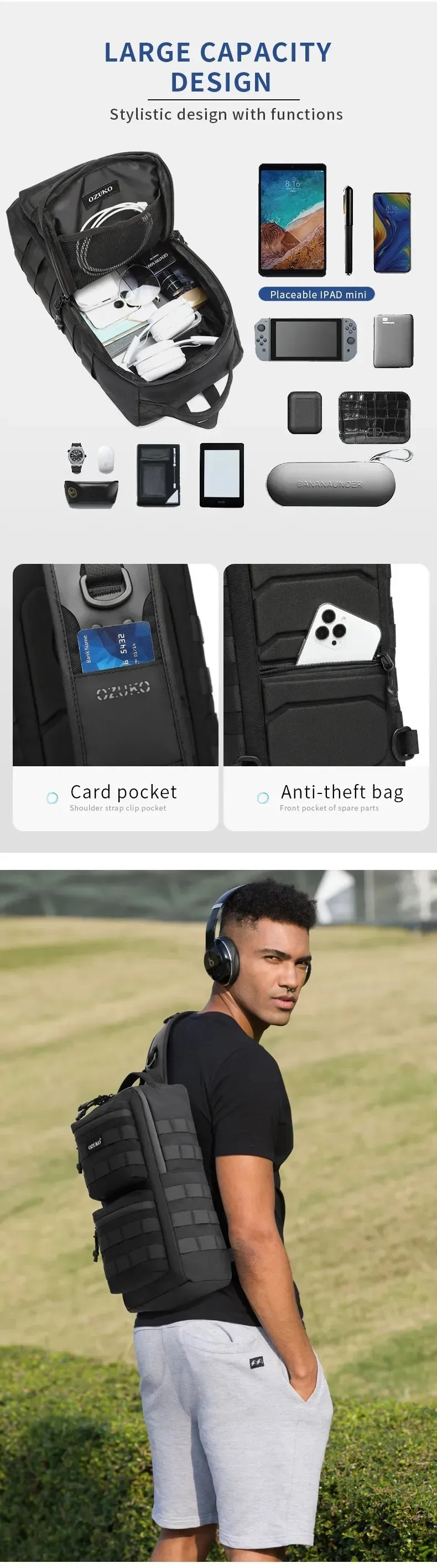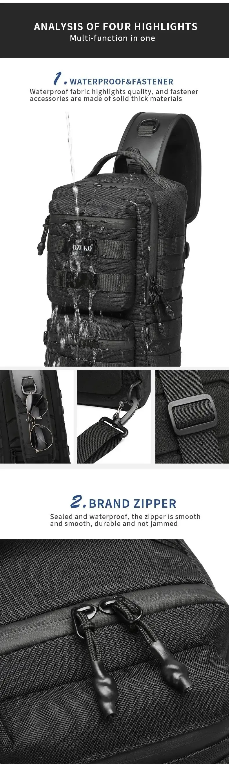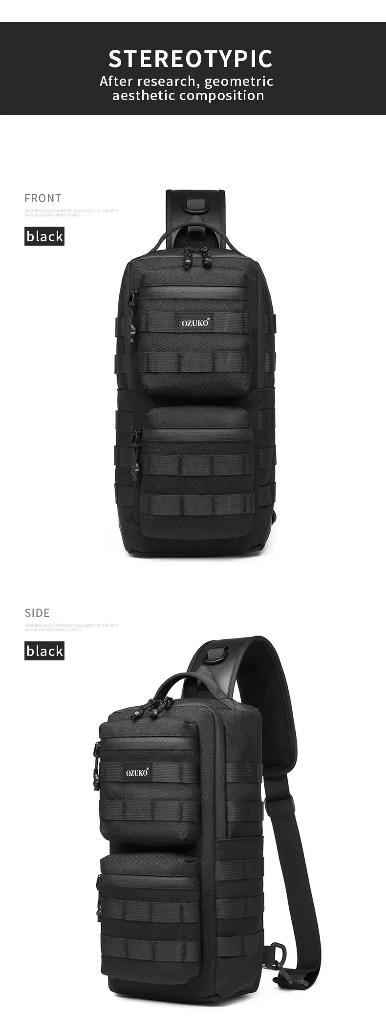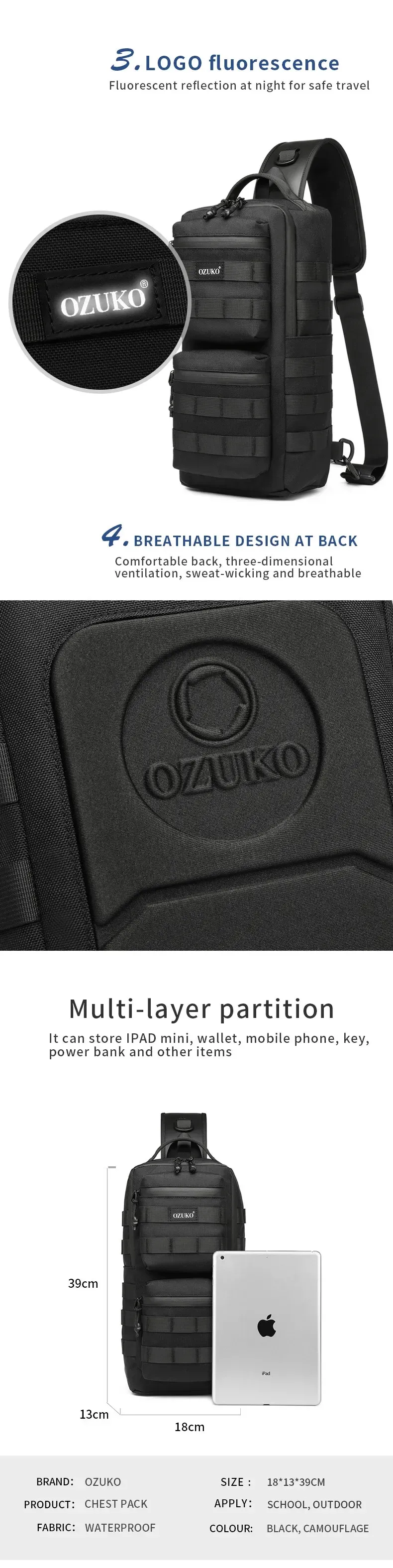 Ozuko New Tactical Chest Bag Outdoor Sports Men's Oblique Straddle Shoulder Bag Waterproof Men's One Shoulder Crossbody Bag