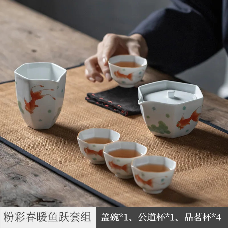 Pastel New National Fashion Kung Fu Tea Set Home Living Room Complete Set Office Reception Tureen Ceramic Gift Box