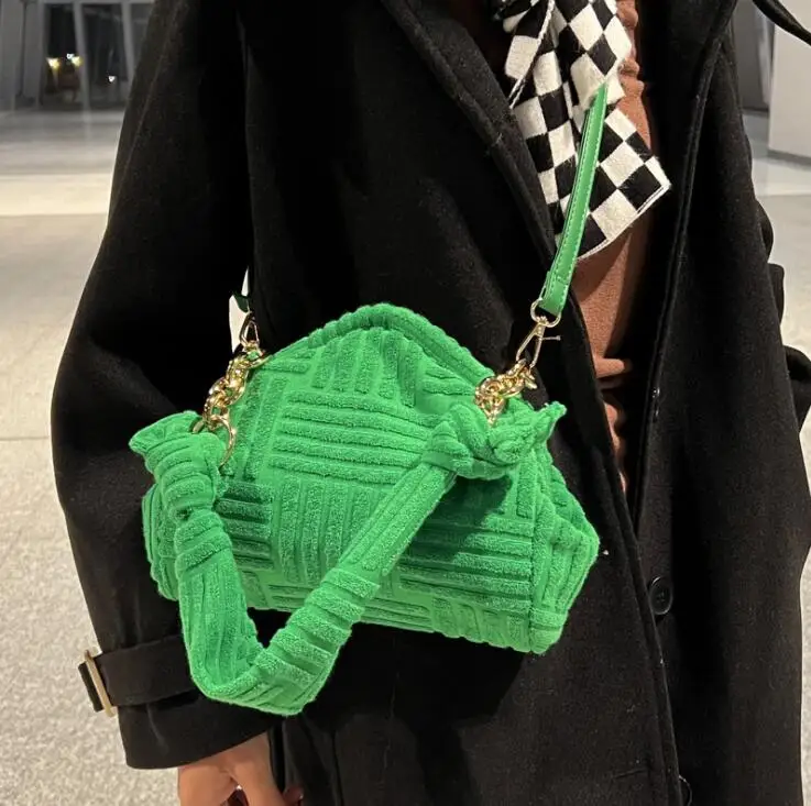 pattern women plush triangle clip handbag all-match bag shoulder bag