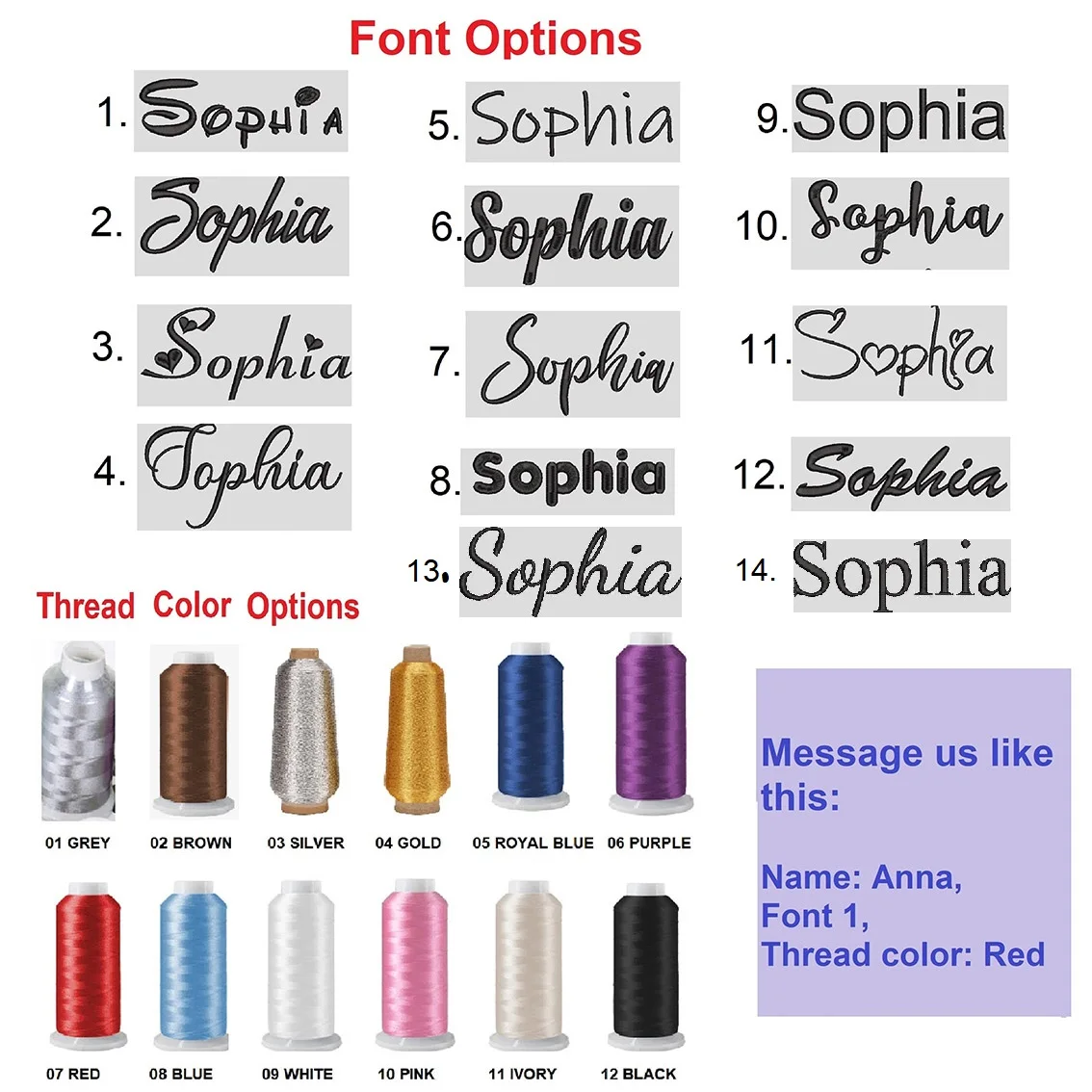2. Please choose the Font type and the thread Color which you need. -