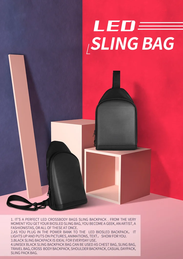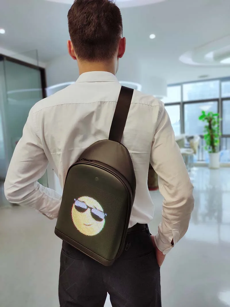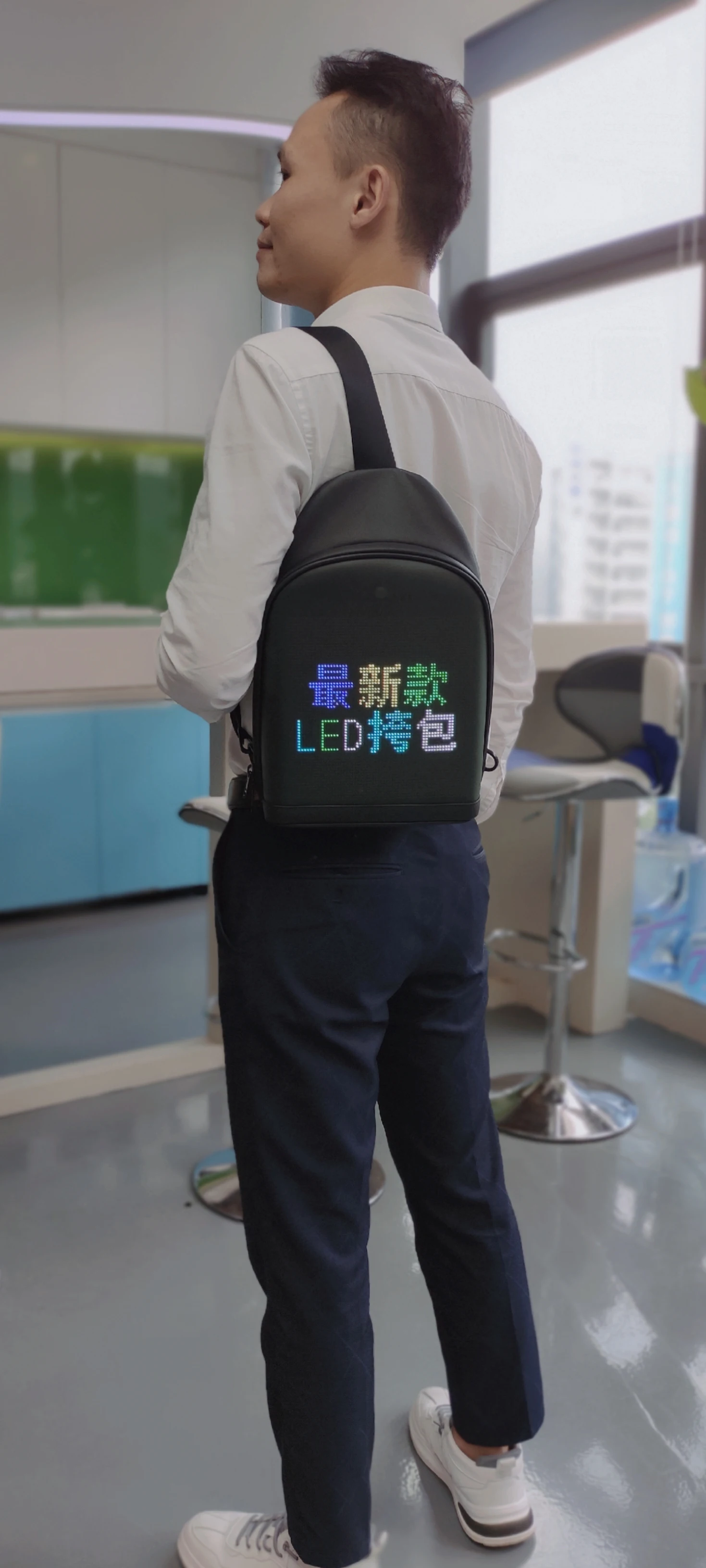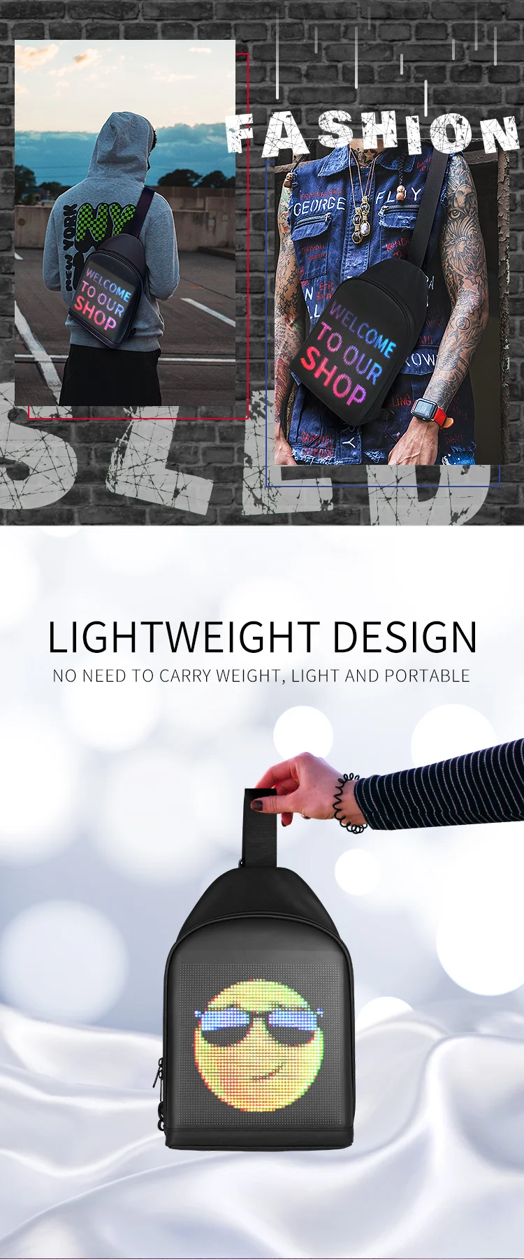 Product Features:Sling chest bagwith Display,Technological sense, trend Highlights:Smart APP Control,wifi bag