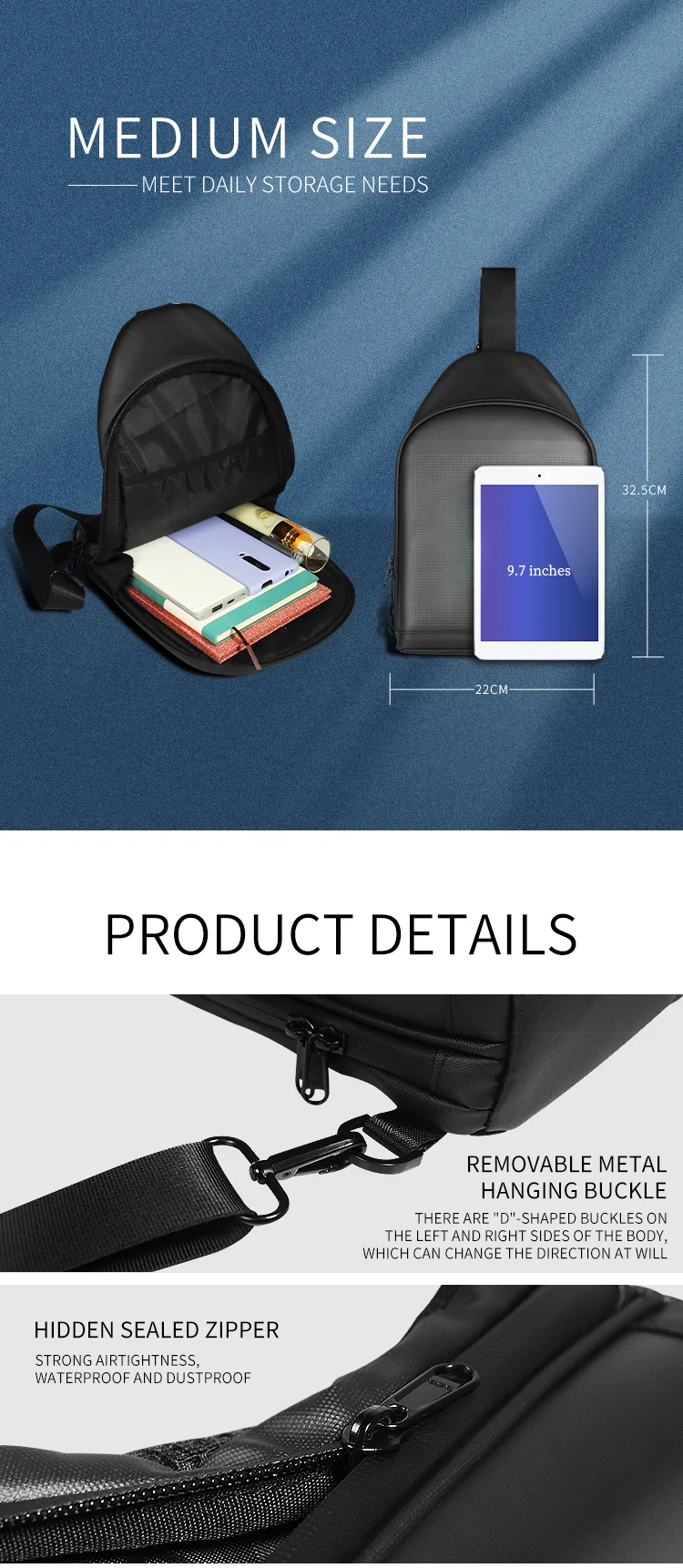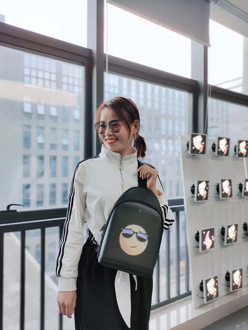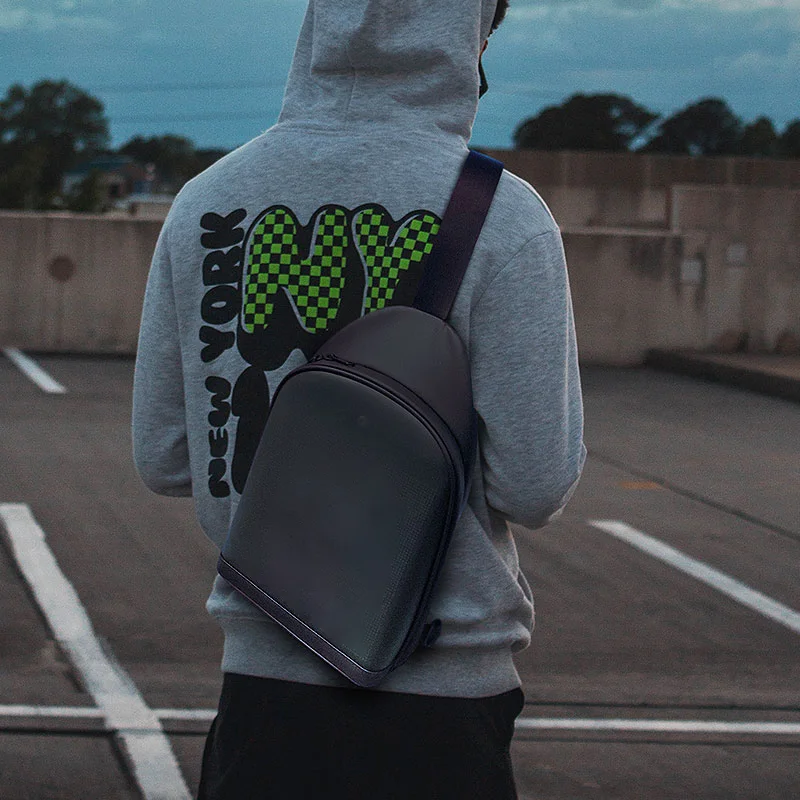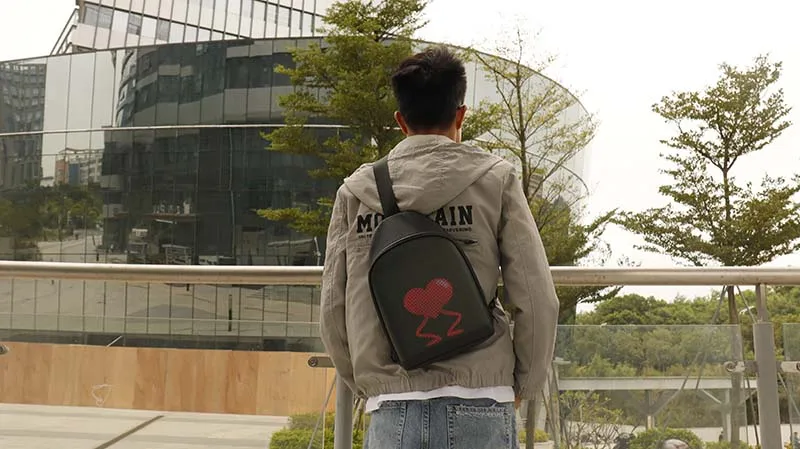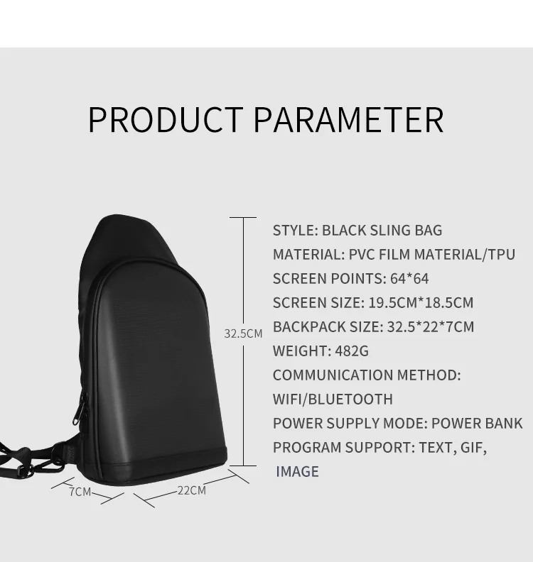Product Features:Sling chest bagwith Display,Technological sense, trend Highlights:Smart APP Control,wifi bag