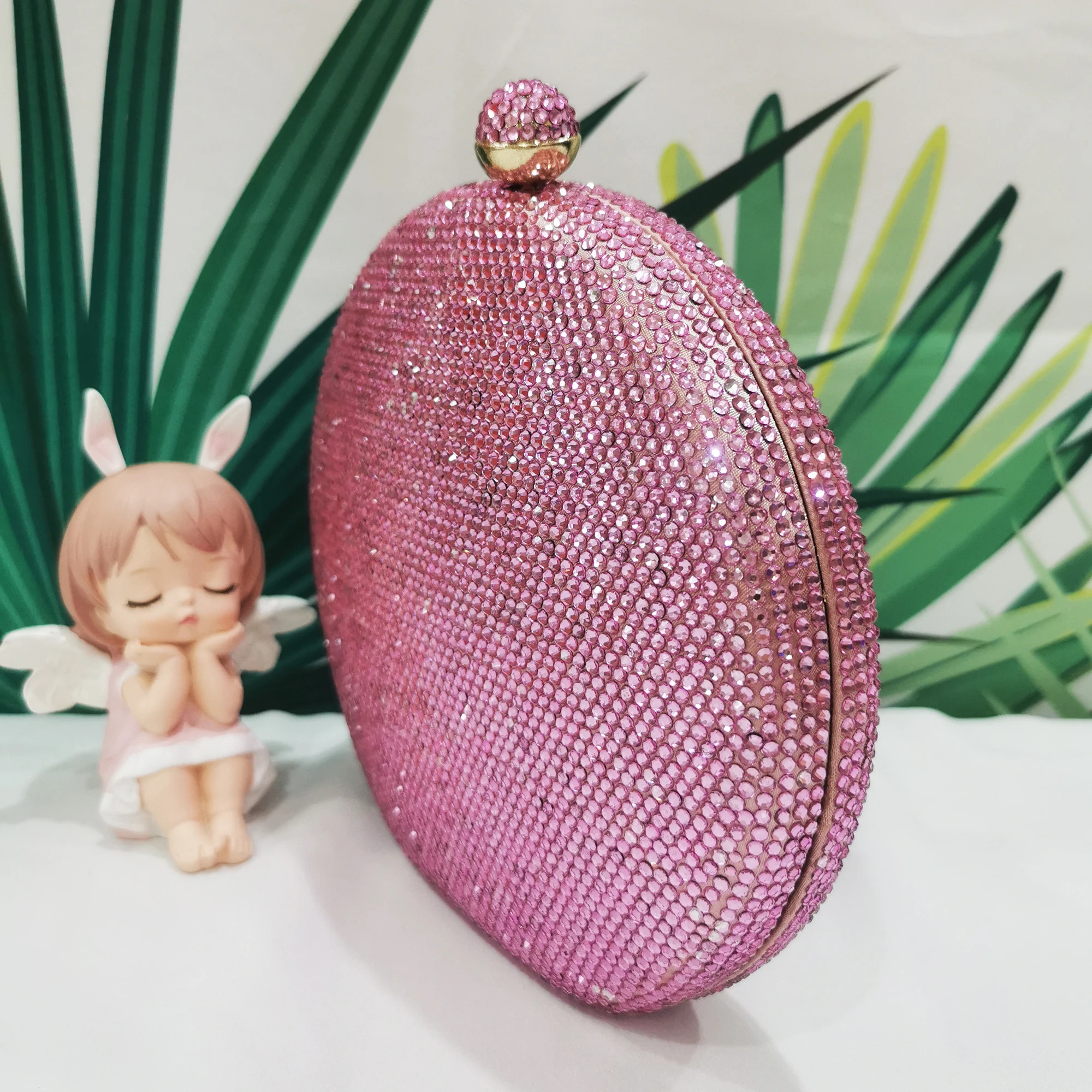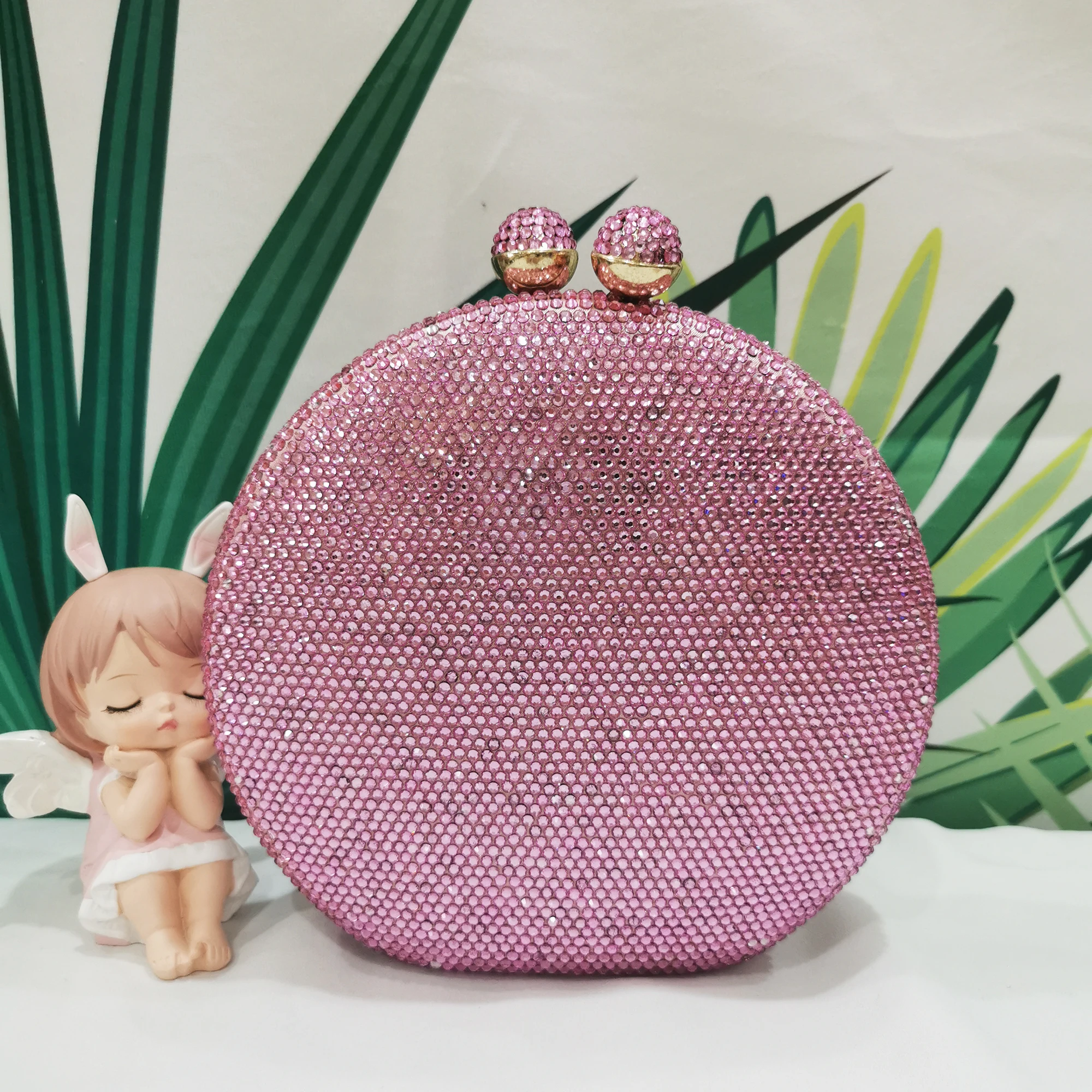 Pink Sweet Round Shape Diamond Purses Women Purple Evening Bags Bridal Wedding Formal Dinner Crystal Clutch Purse and Handbags