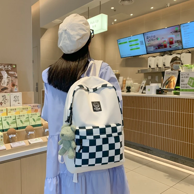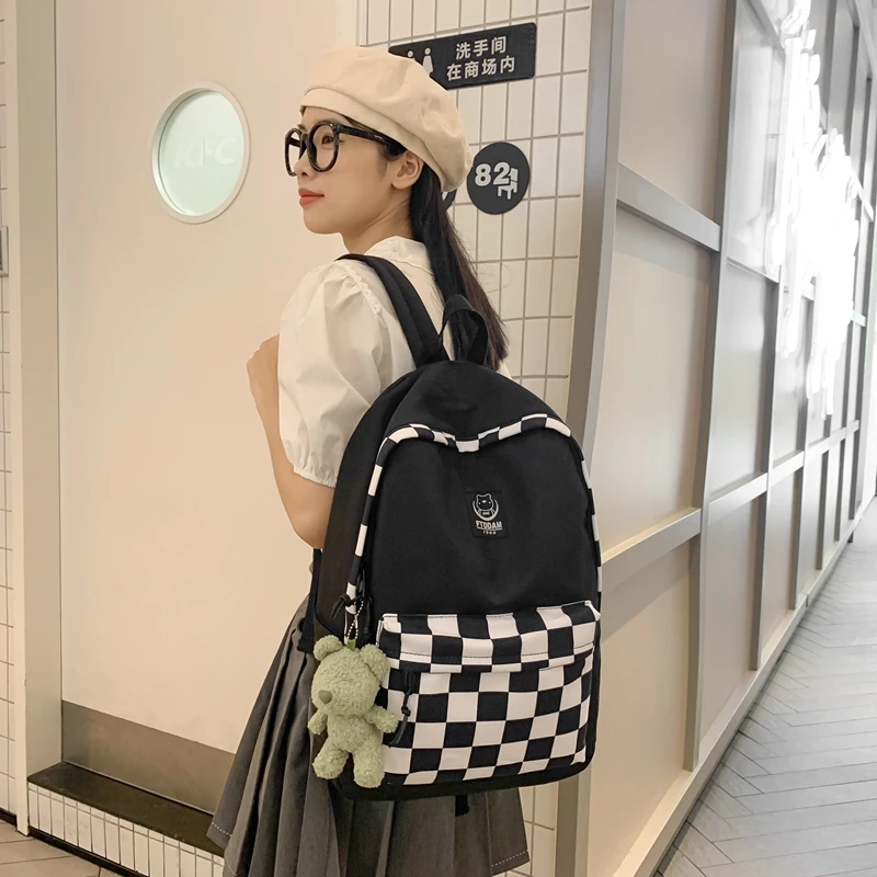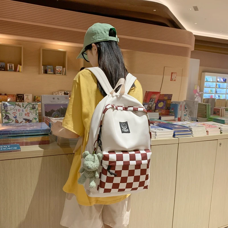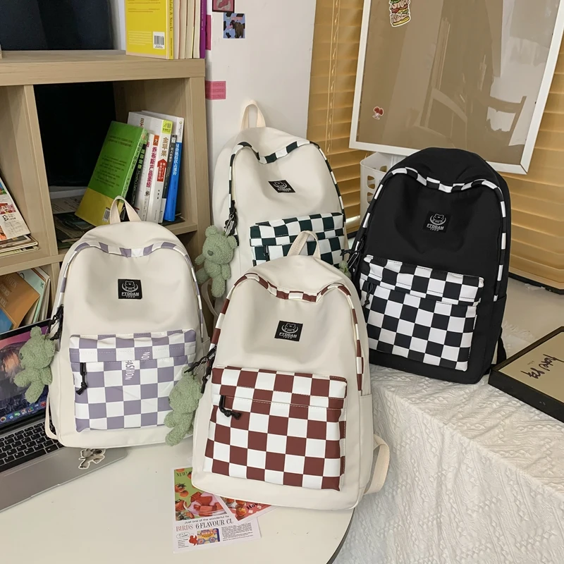 Plaid Female Trendy Teenager Book Bag Girl Travel Laptop Kawaii Backpack Women Leisure School Bags Ladies College Packet Fashion