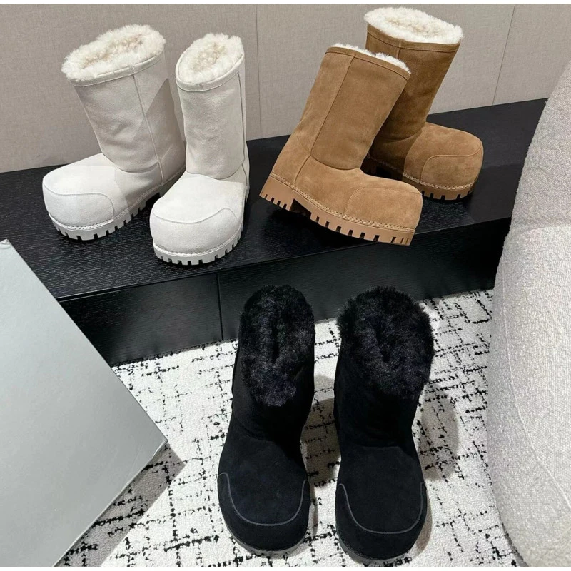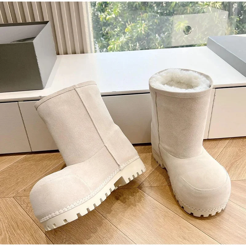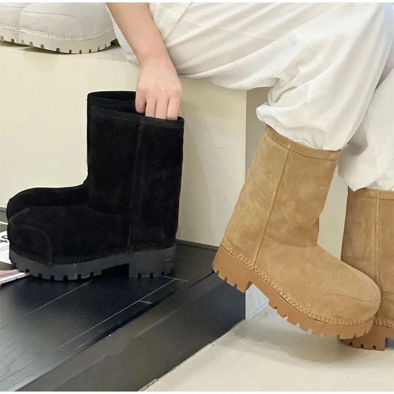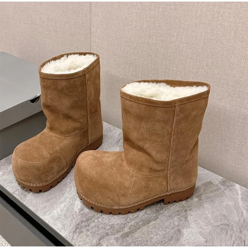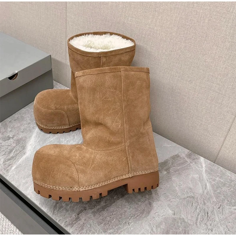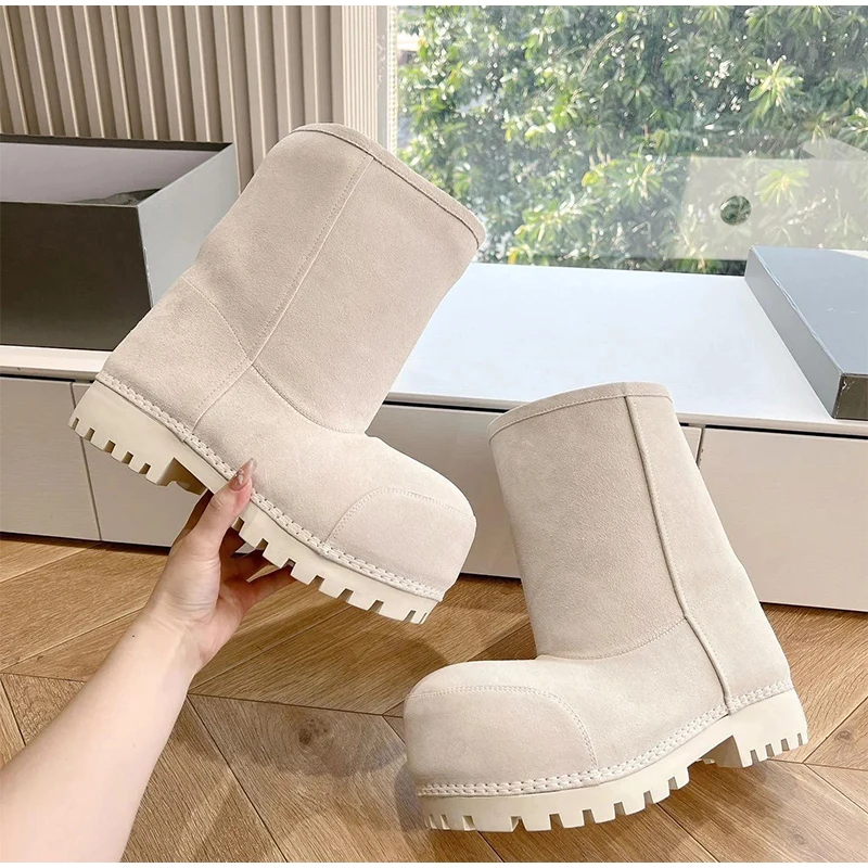 Plus Velvet Warm Snow Boots For Women's Unique Design Round Toe Thick Sole Ladies Fashion Calf Boots Winter New Long Boots