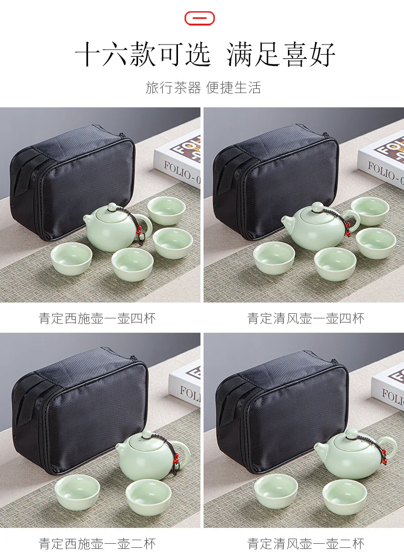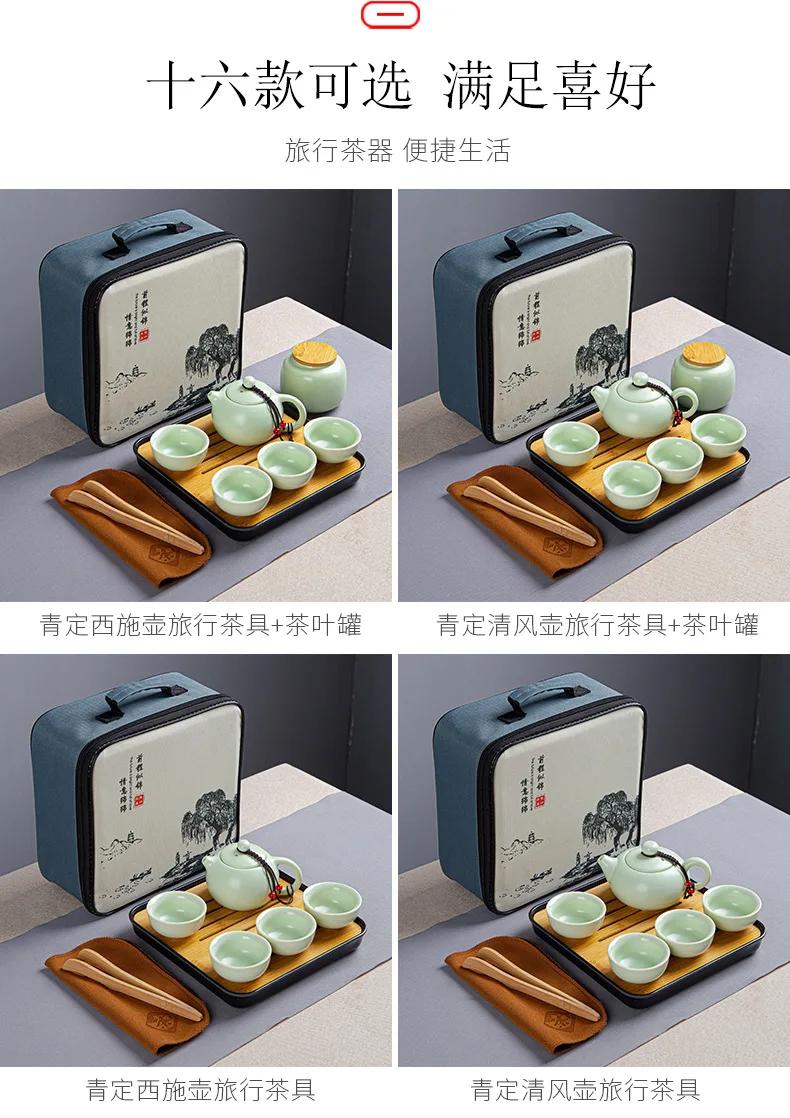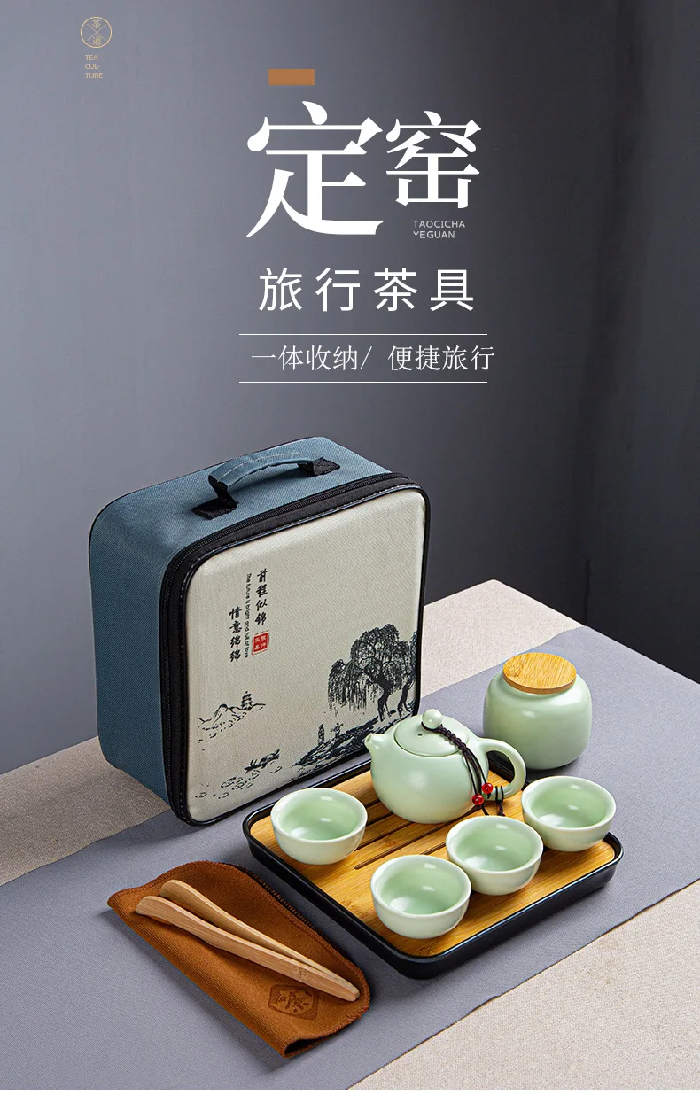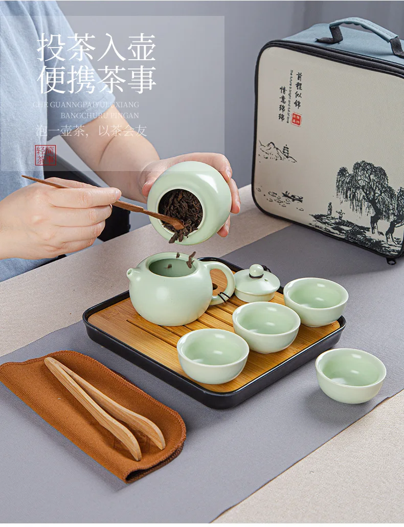 Portable Ceramic Xi Shi Pot Travel Kung Fu Tea Pot Real Estate Companion Gift Box Chinese Cup Set of 6 Celadon Tray Clay Caddy