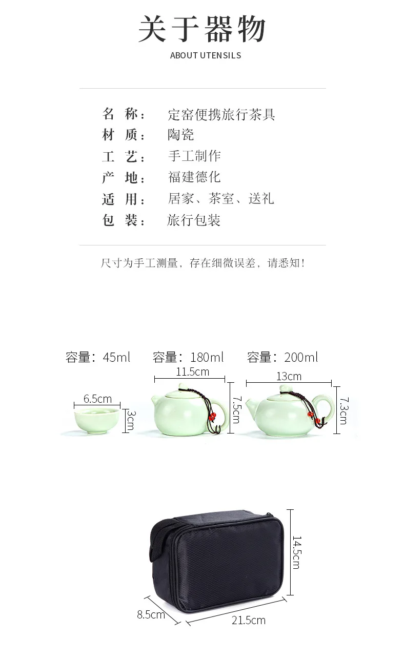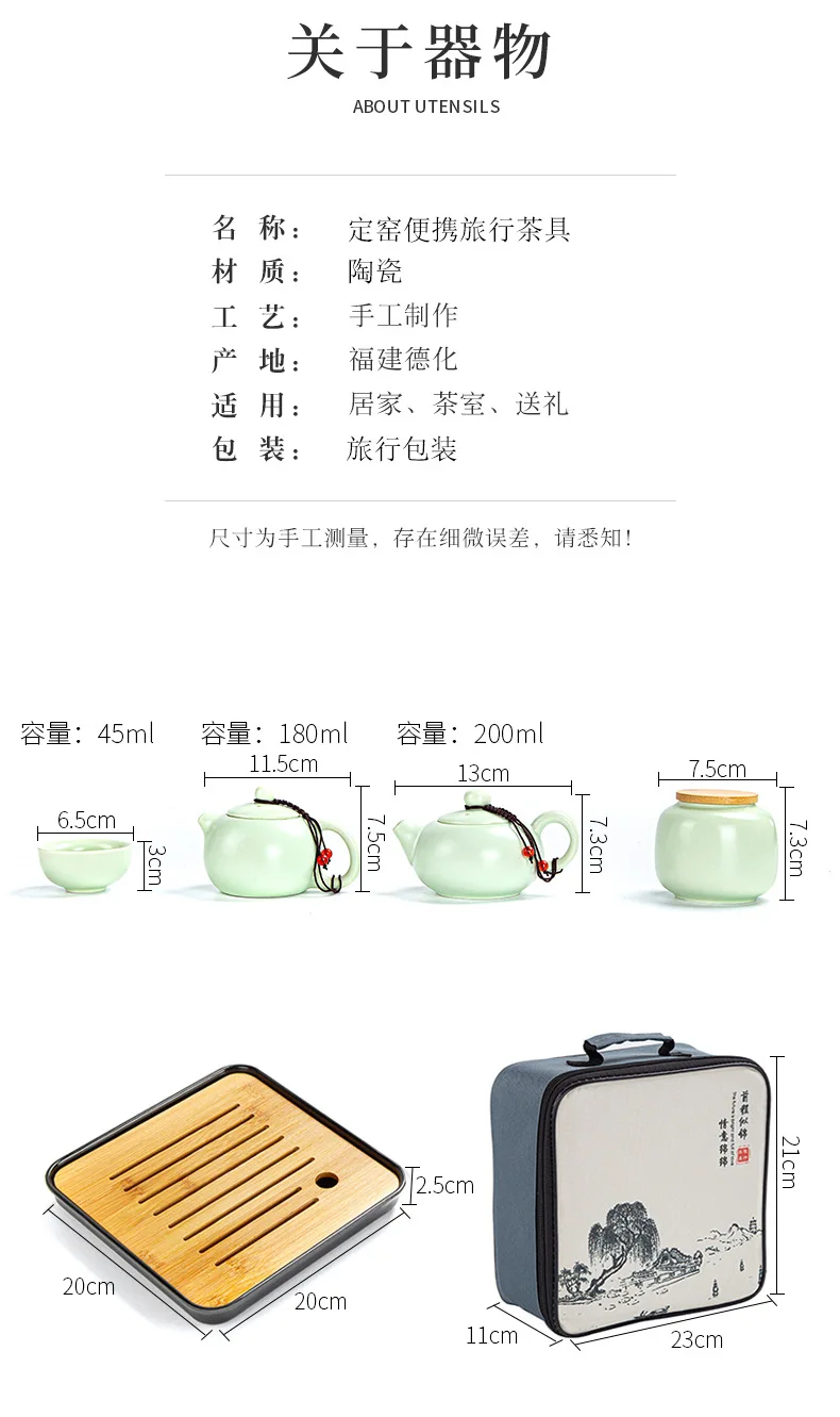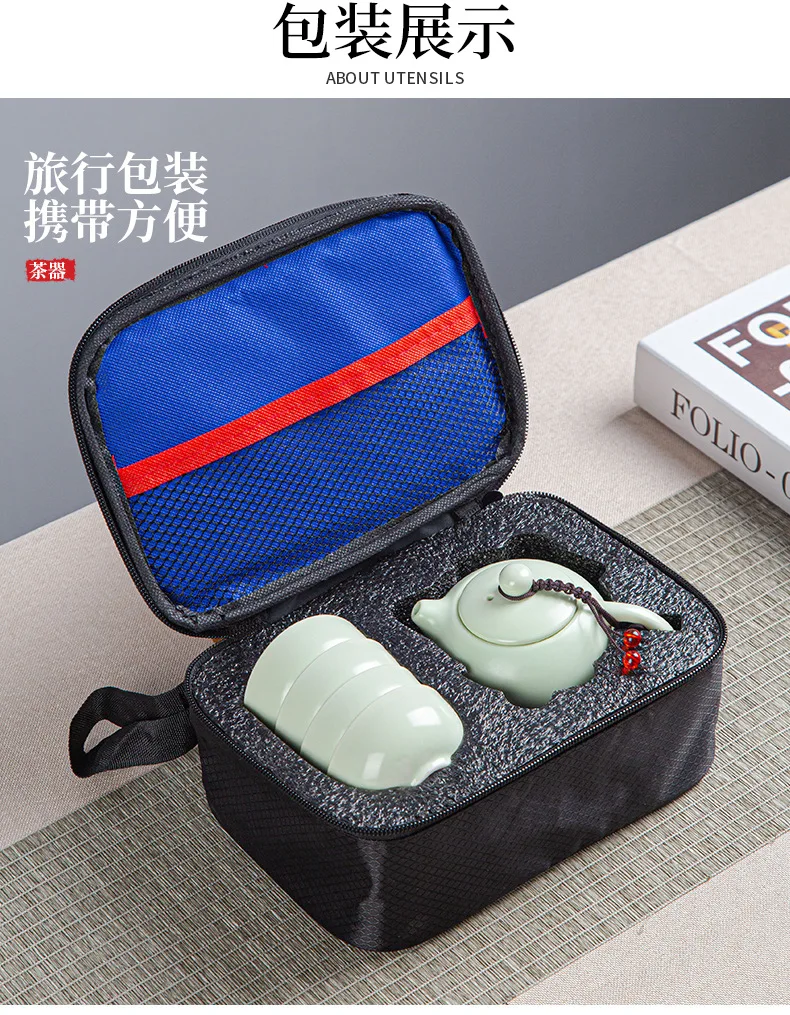 Portable Ceramic Xi Shi Pot Travel Kung Fu Tea Pot Real Estate Companion Gift Box Chinese Cup Set of 6 Celadon Tray Clay Caddy
