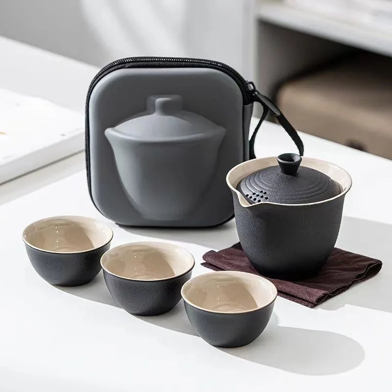 Portable Outdoor Kung Fu Tea Set Green Tea Pots and Cups Set Teacups Coffee Teapot Teeware Teware Coffeeware Teaware Gaiwan Cup