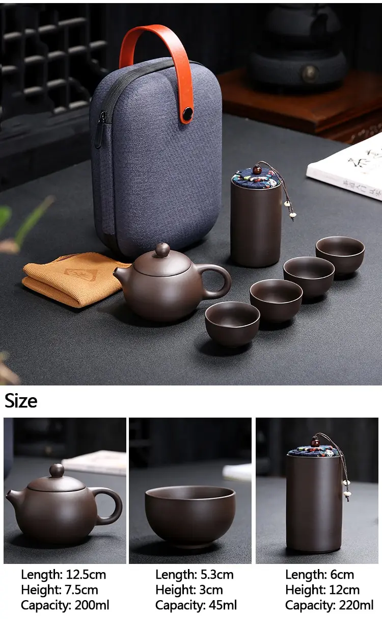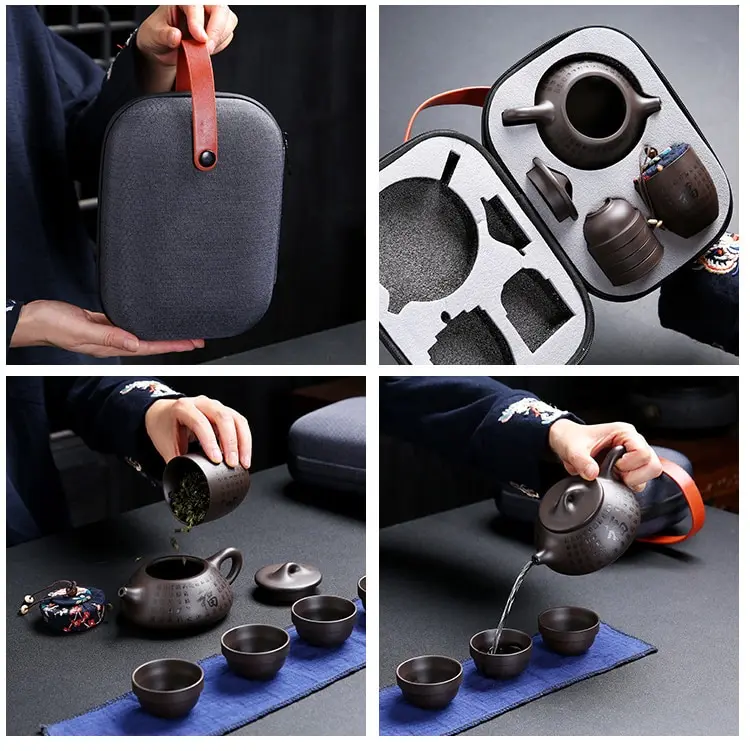 Portable Travel Tea Set Purple Clay Kung Fu Teaset Chinese Ceramic TeaPot 4 Cups