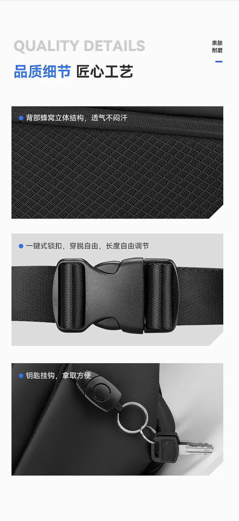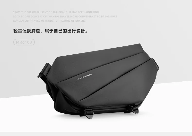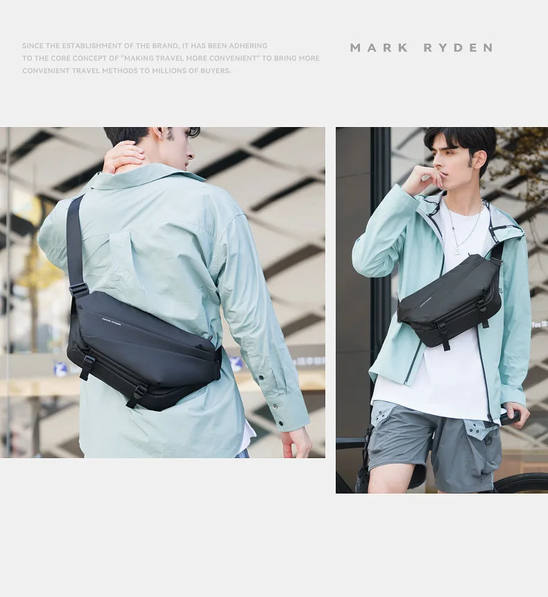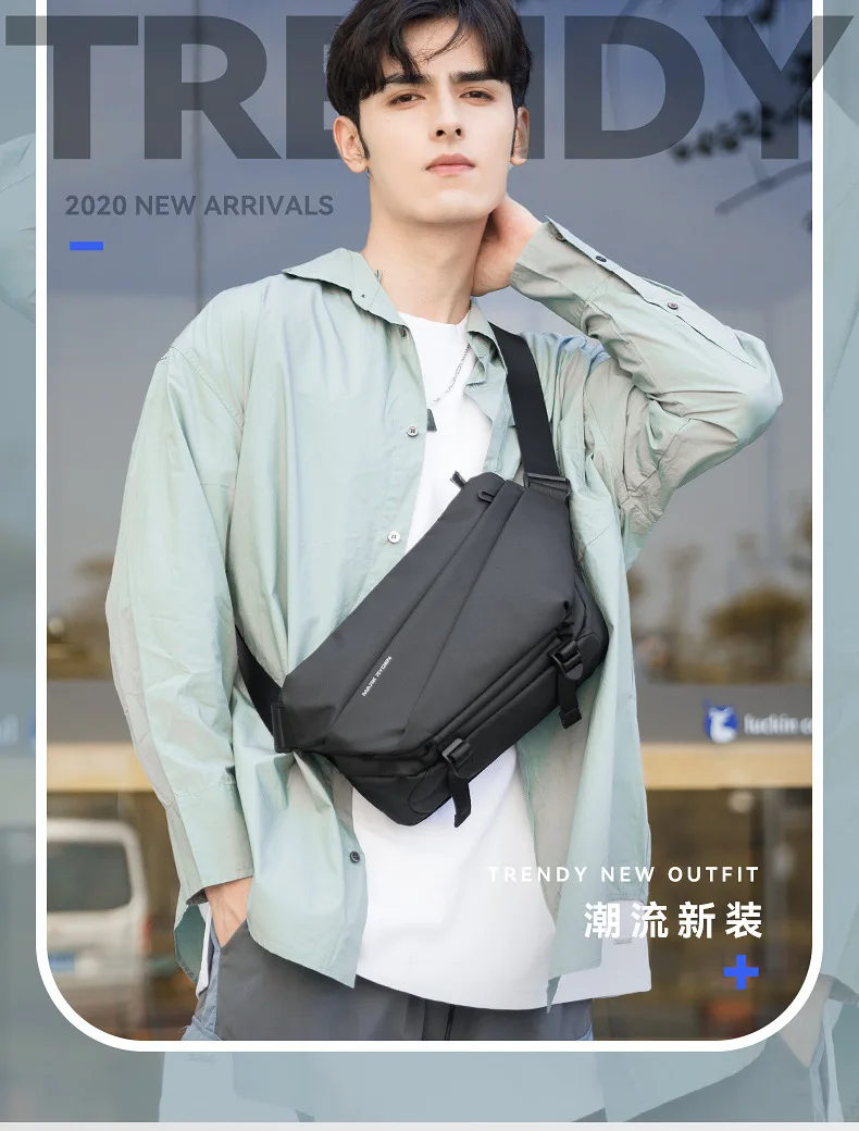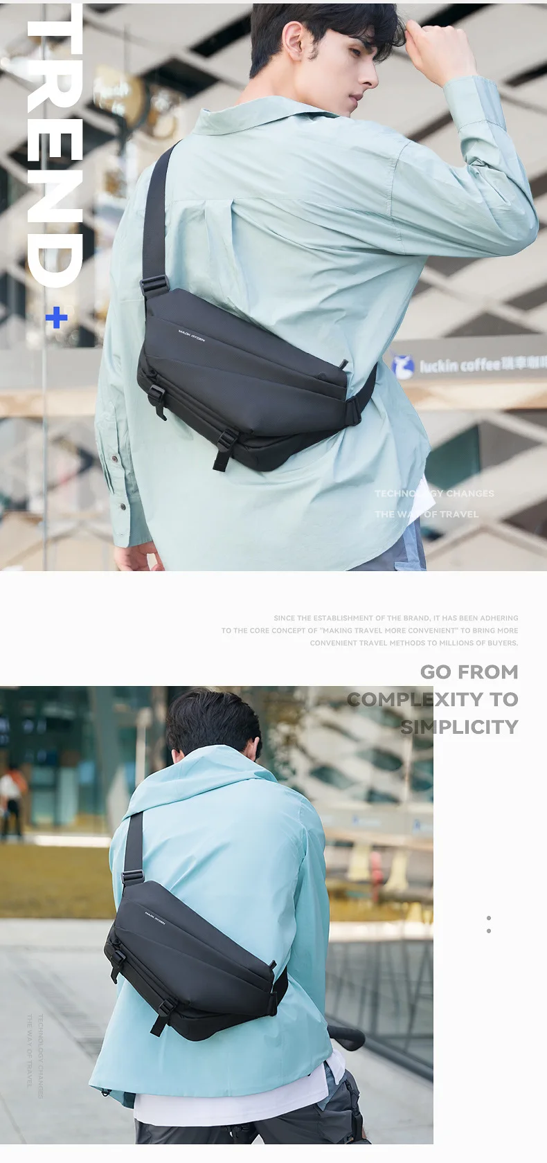 Premium Black Waterproof CrossBag Personality Fashion Men Magnetic Messenger Bag Lightweight Minimalist Sling Shoulder Bag