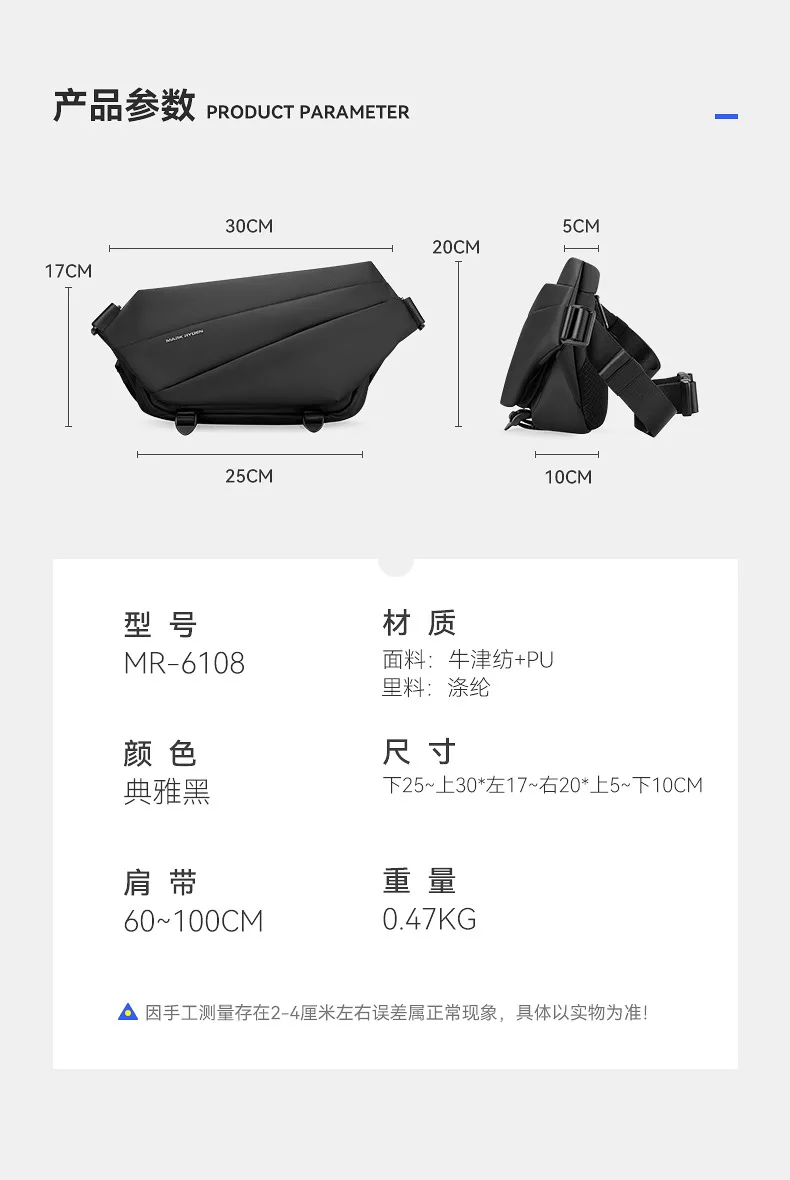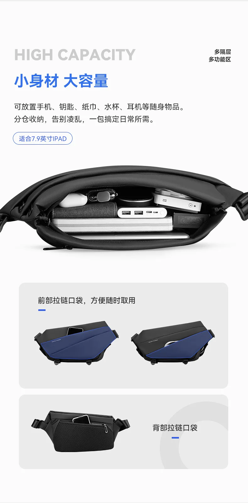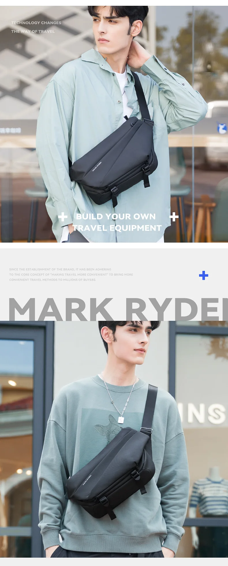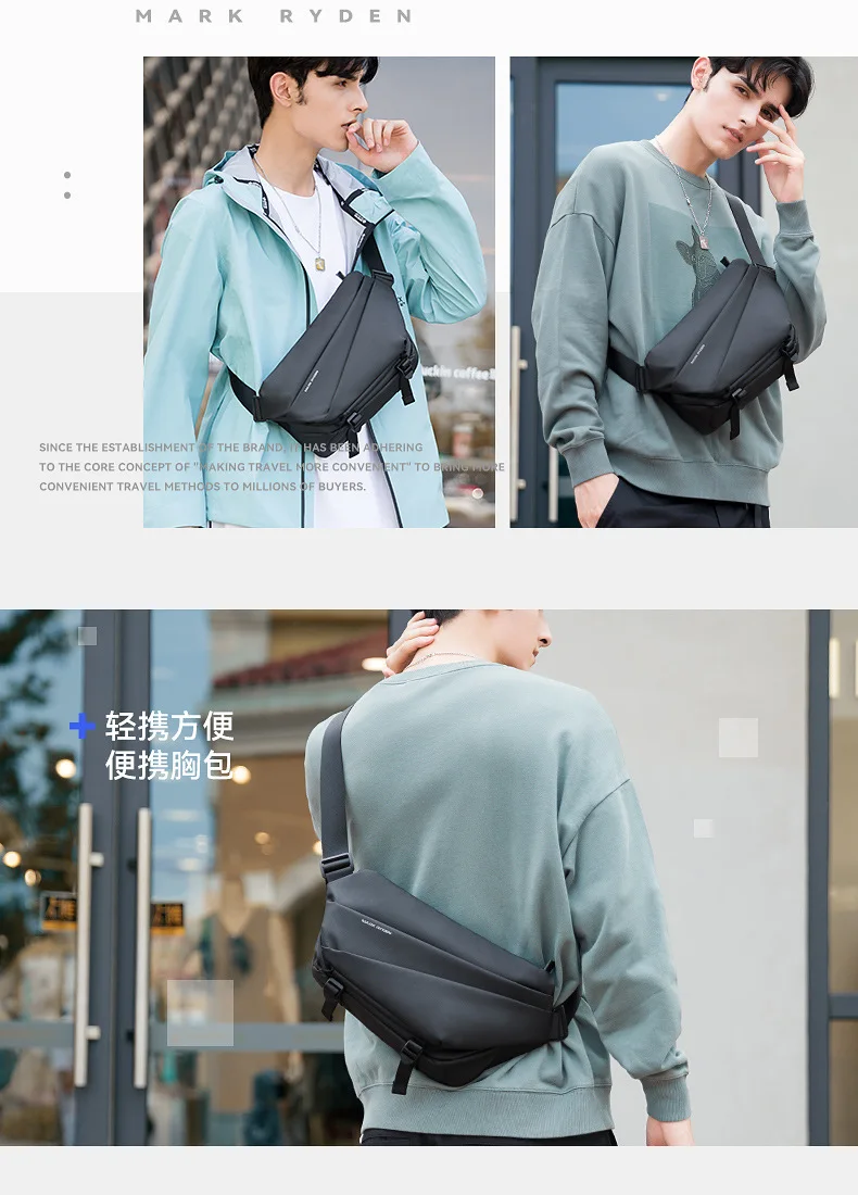 Premium Black Waterproof CrossBag Personality Fashion Men Magnetic Messenger Bag Lightweight Minimalist Sling Shoulder Bag