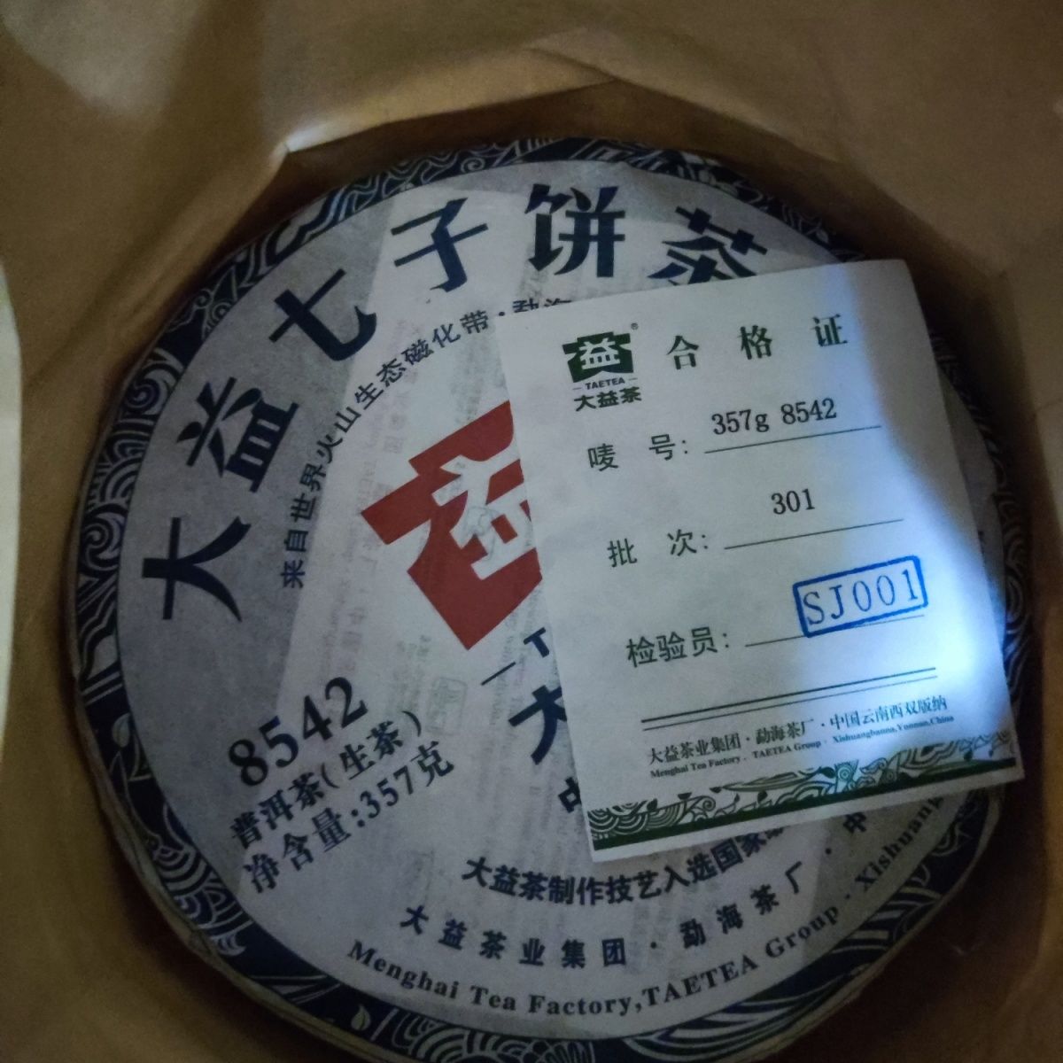 2013 TAETEA DaYi 8542 301 Beeng Cake China YunNan MengHai Chinese Puer Puerh Raw Tea 357g Tea Type: Puer Raw cake tea Net weight: 357g/pc, Price for one pc ONLY. Production Date: 2013,301 batch Origin: Menghai,Yunnan,China Manufacturer: Menghai Tea factory,TAETEA Group. |