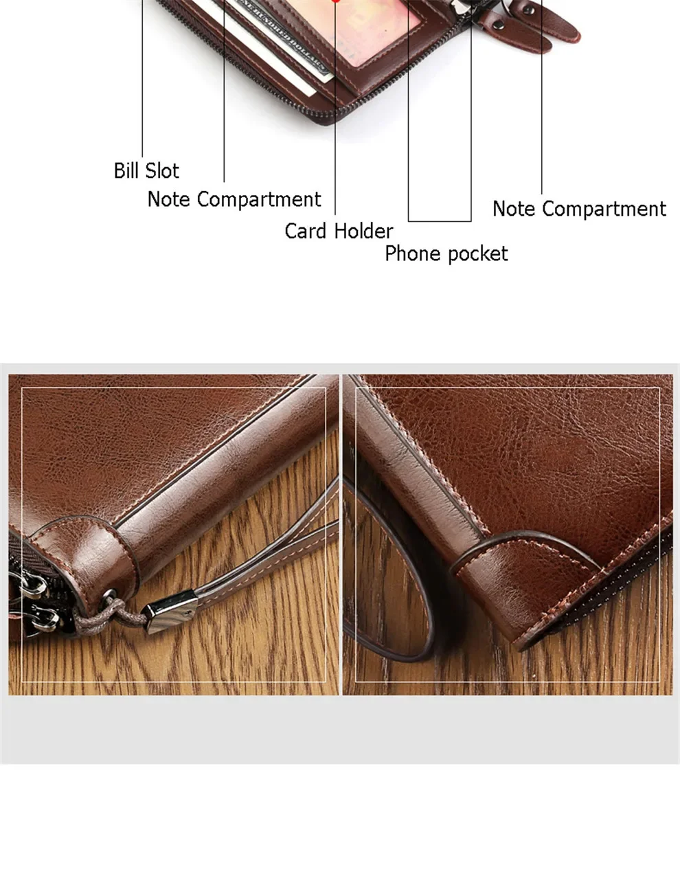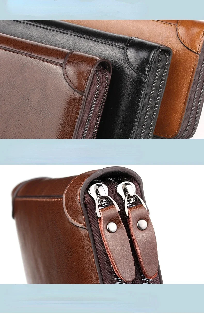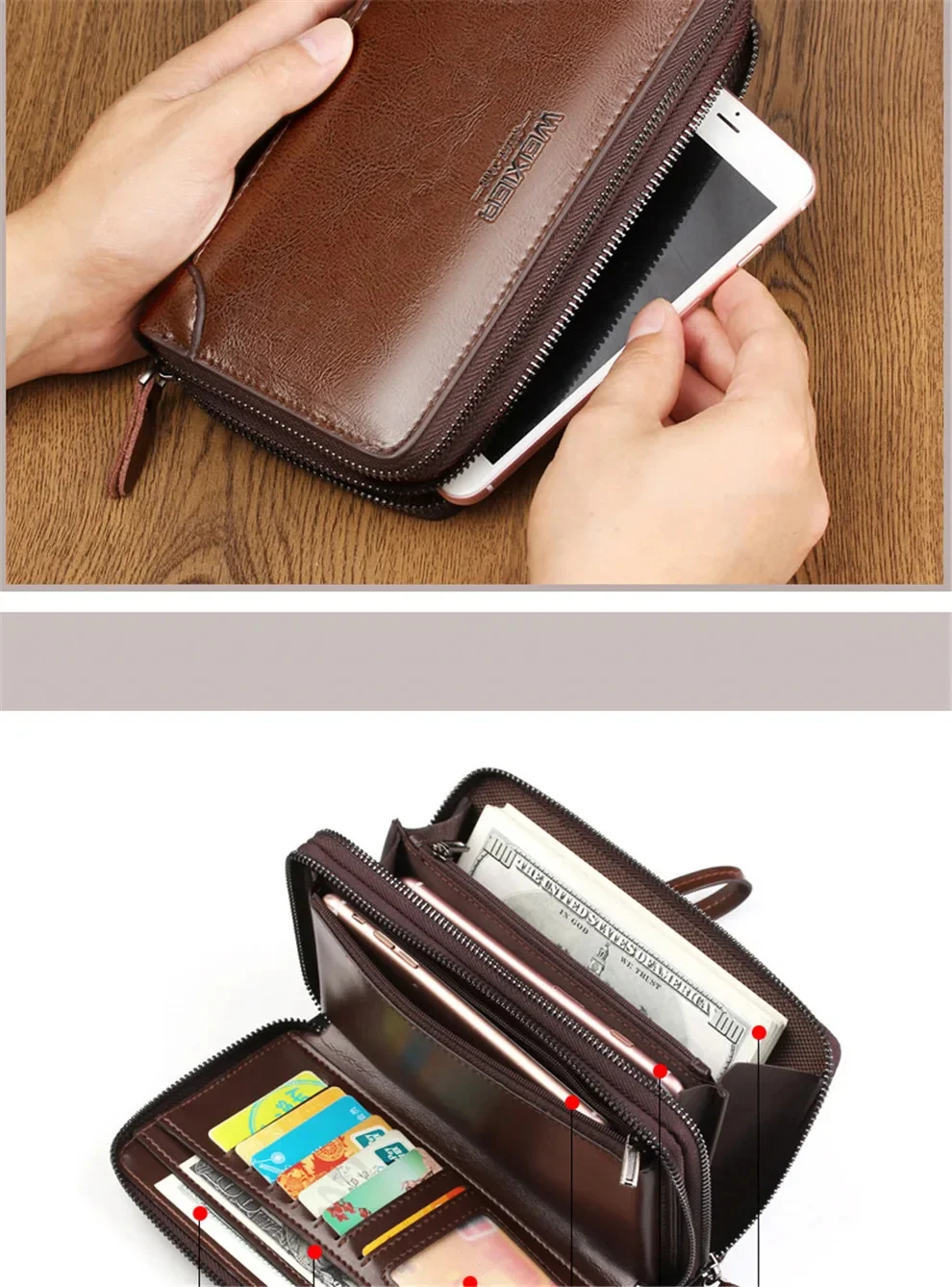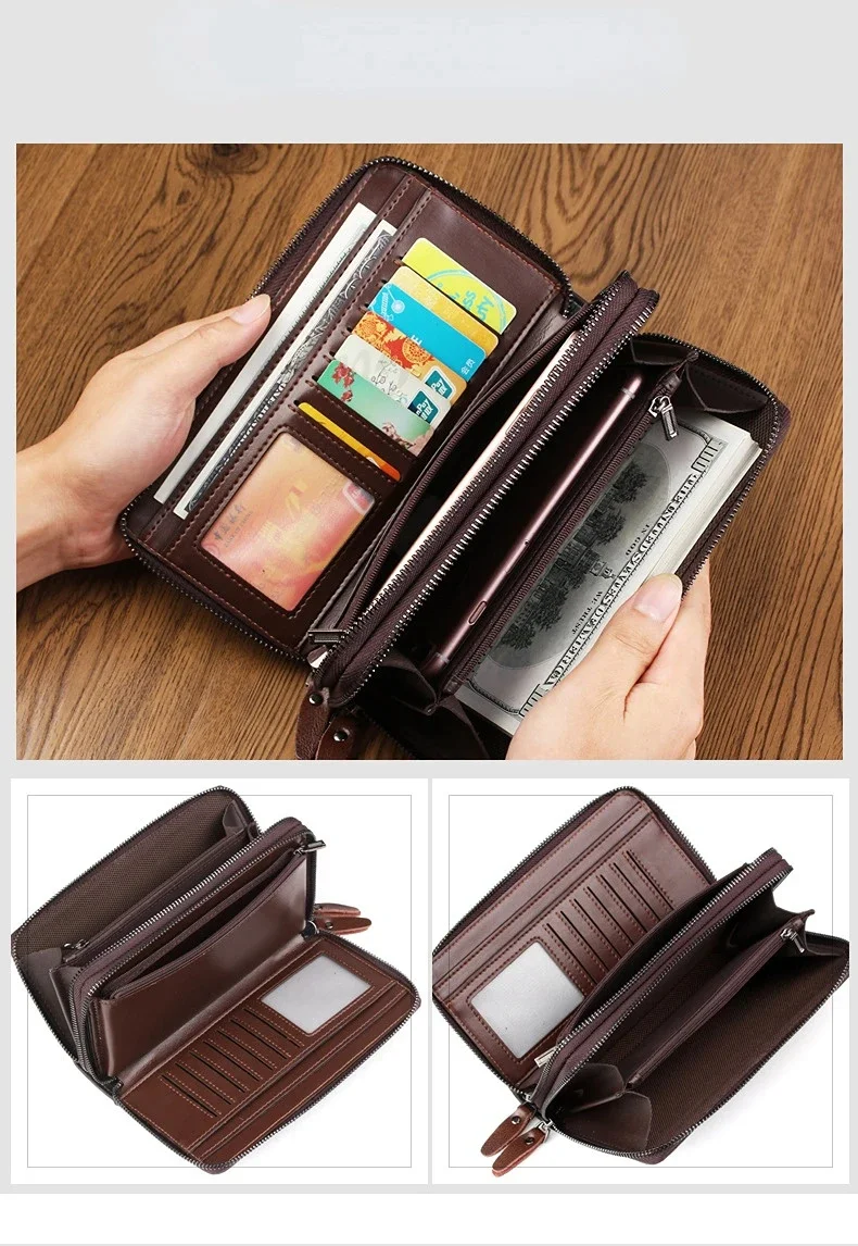 PU Casual Clutch Men Functional Long Wallet Photo Bank Card Holder Purse for Male Note Compartment Phone Pockets Bag