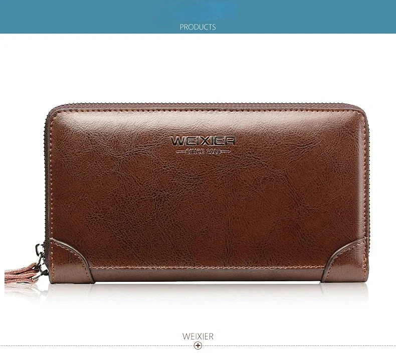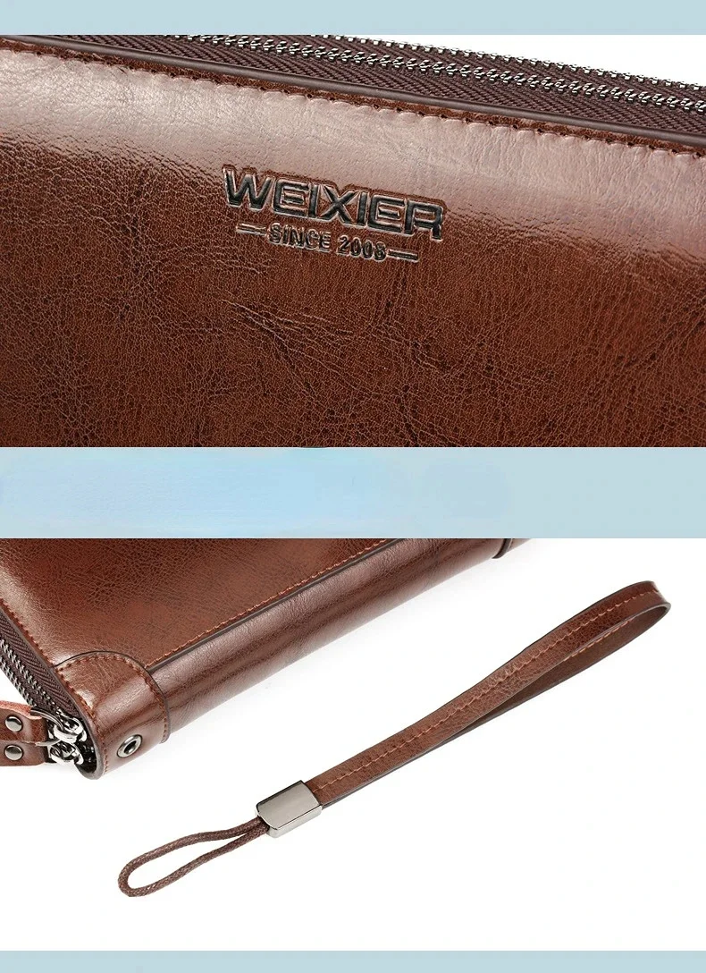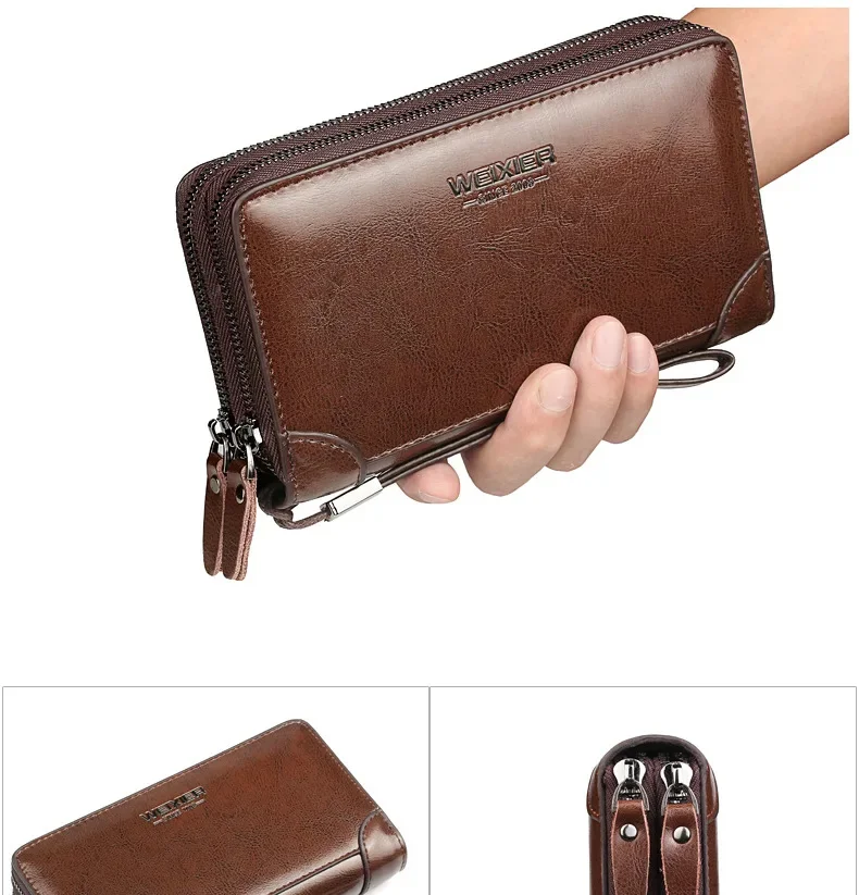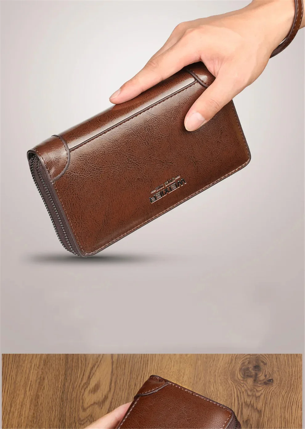 PU Casual Clutch Men Functional Long Wallet Photo Bank Card Holder Purse for Male Note Compartment Phone Pockets Bag