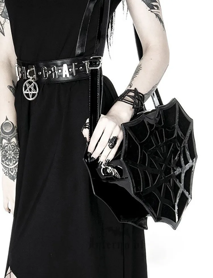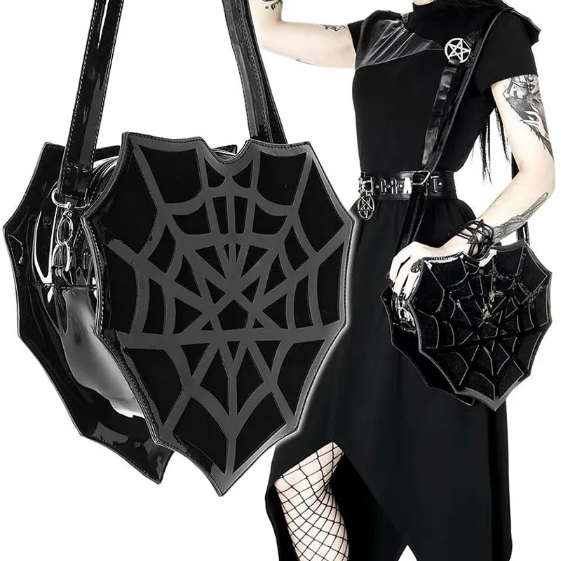 PU women's shoulder Bag Dark Wind Spider Web skew Bag Punk Halloween Creative women bag