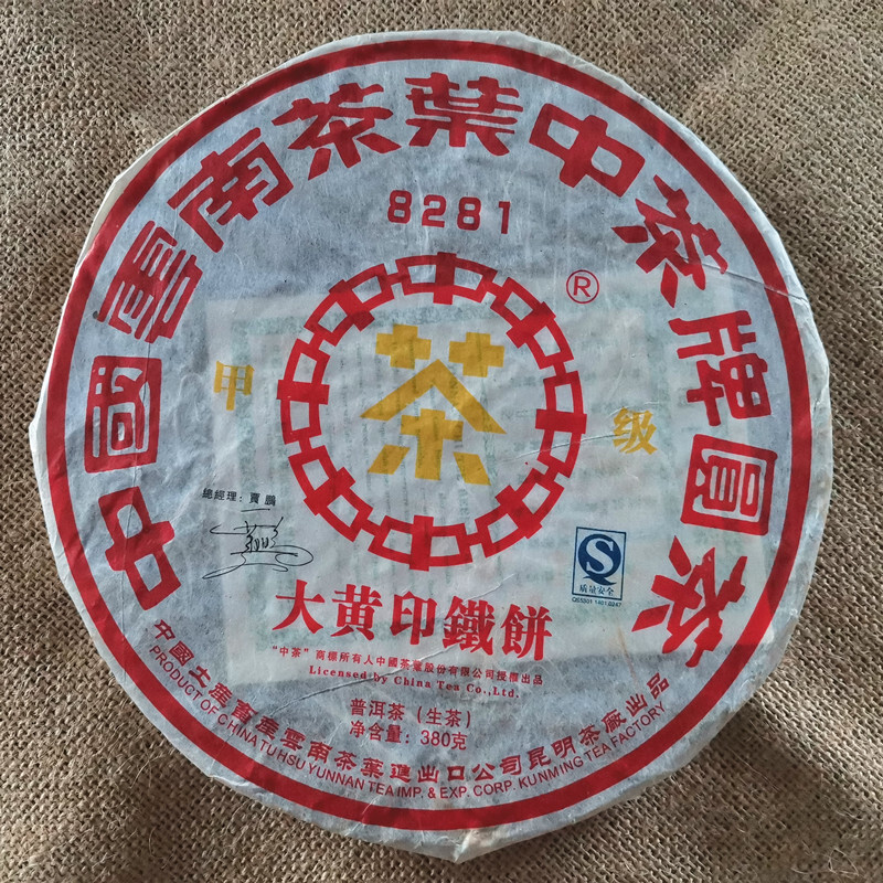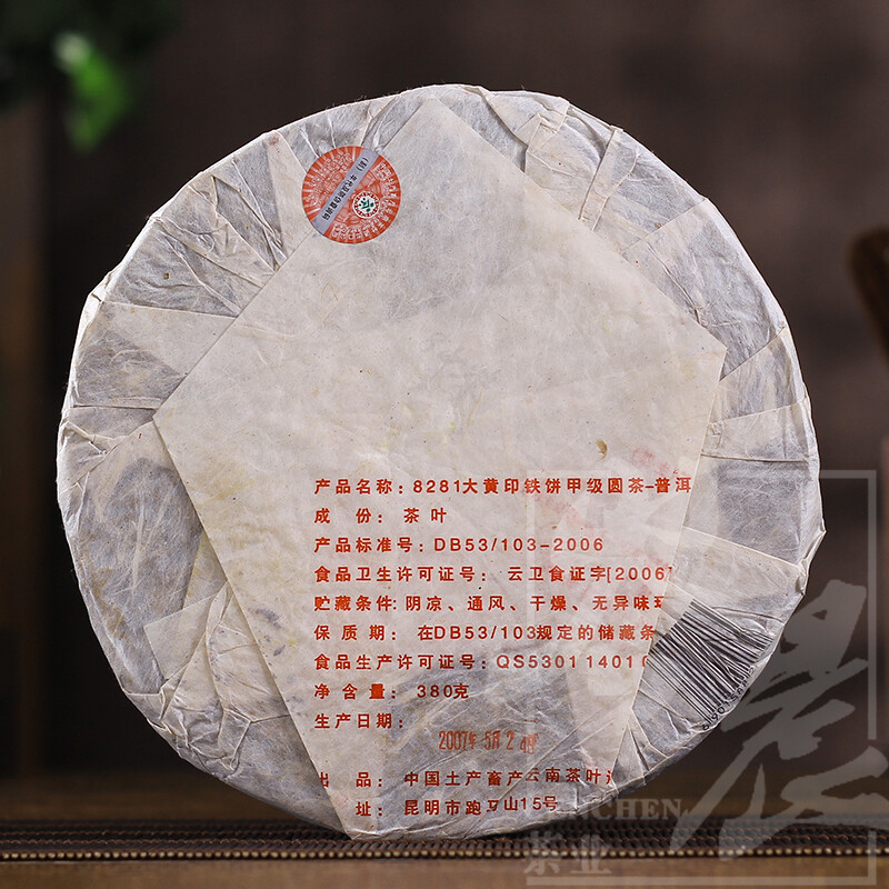 Puer Cha CNNP Yuancha JIA JI 8281 Big Yellow Label Pu'er Iron Cake Tea 380g