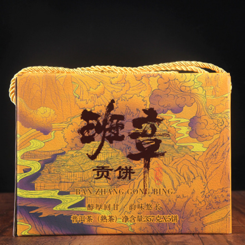 Puerh Ripe Tea Golden Bud Banzhang Puerh Tea Cake Ancient Ripe Tea 357g/12.59oz