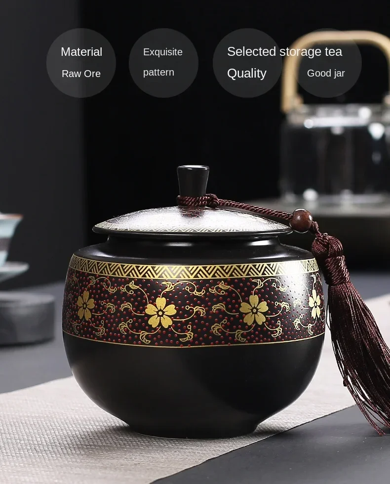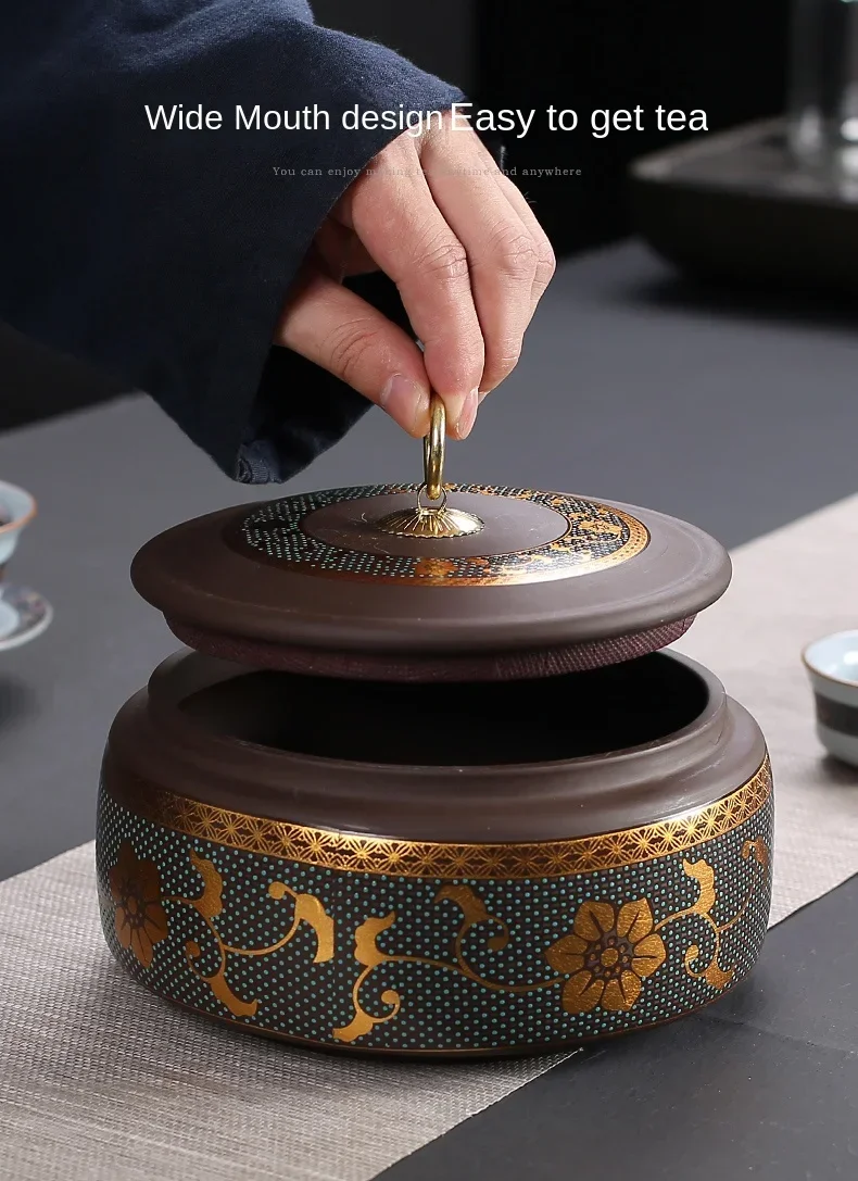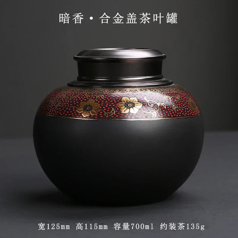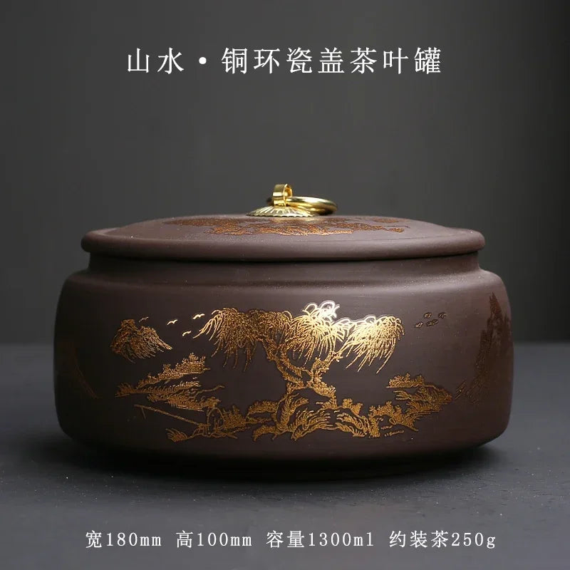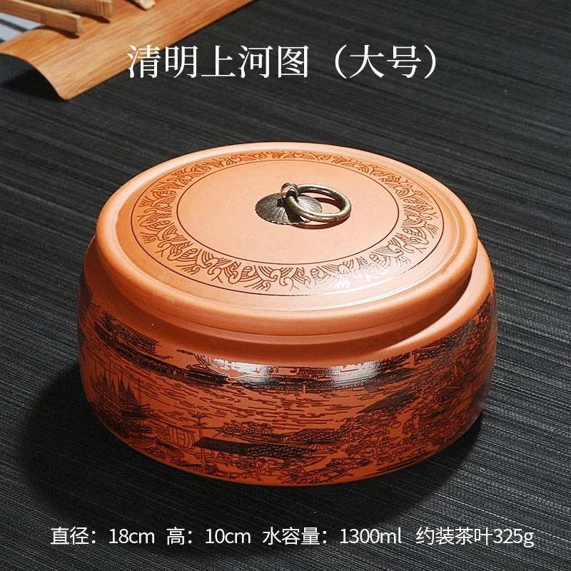 Purple Clay Tea Caddy Ceramic Large Airtight Pot Universal Half Catty Black Tea Green Tea Pu'er Tea Pot Household Storage Tank