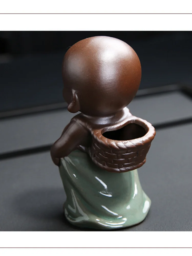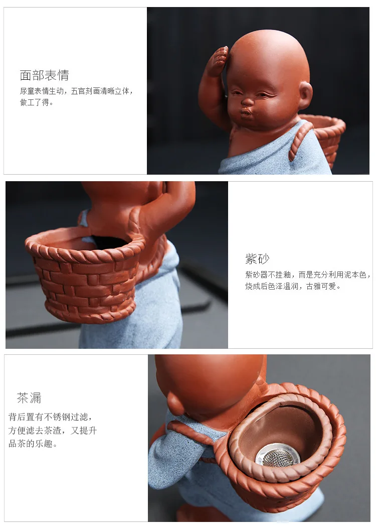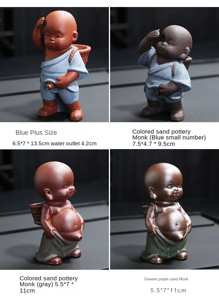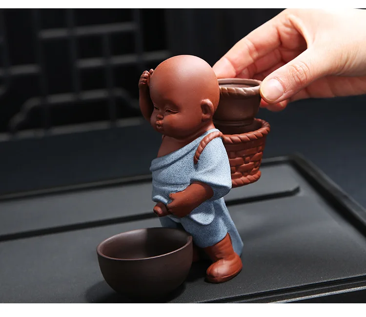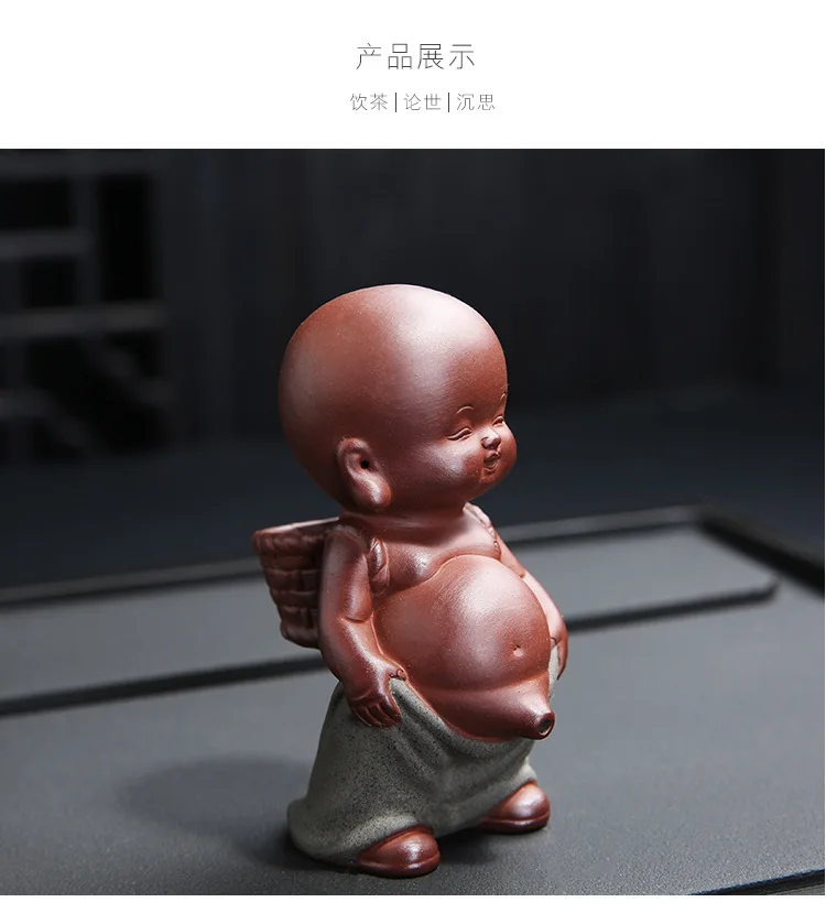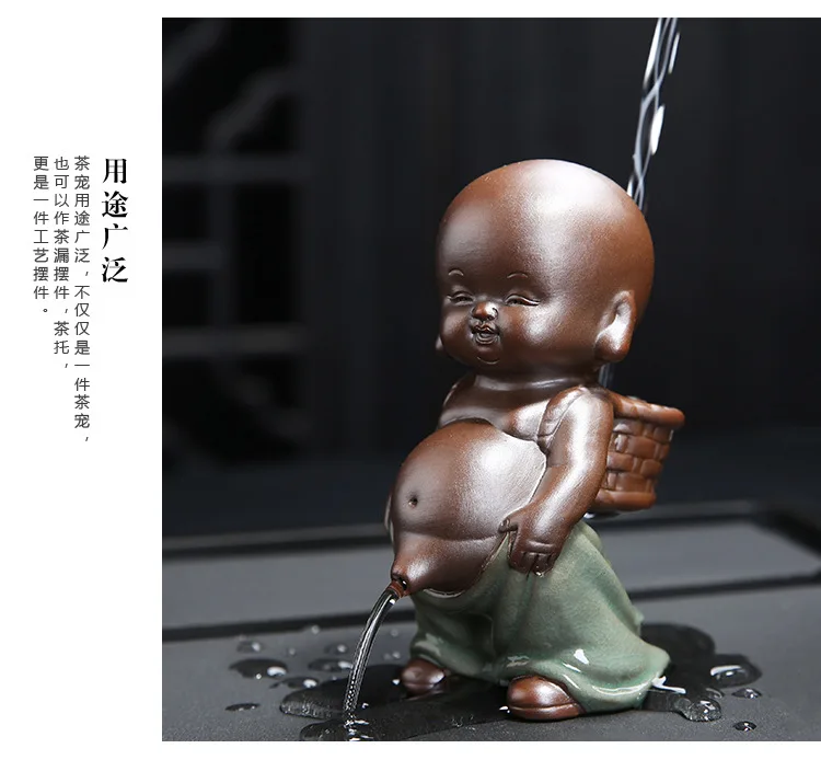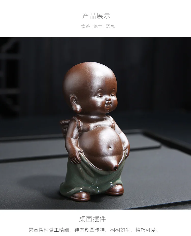Purple Sand Tea Pet Ornaments Little Monk Ceramic Figures Tea Play Peeing Doll Tea Set Peeing Water Spray Accessories
