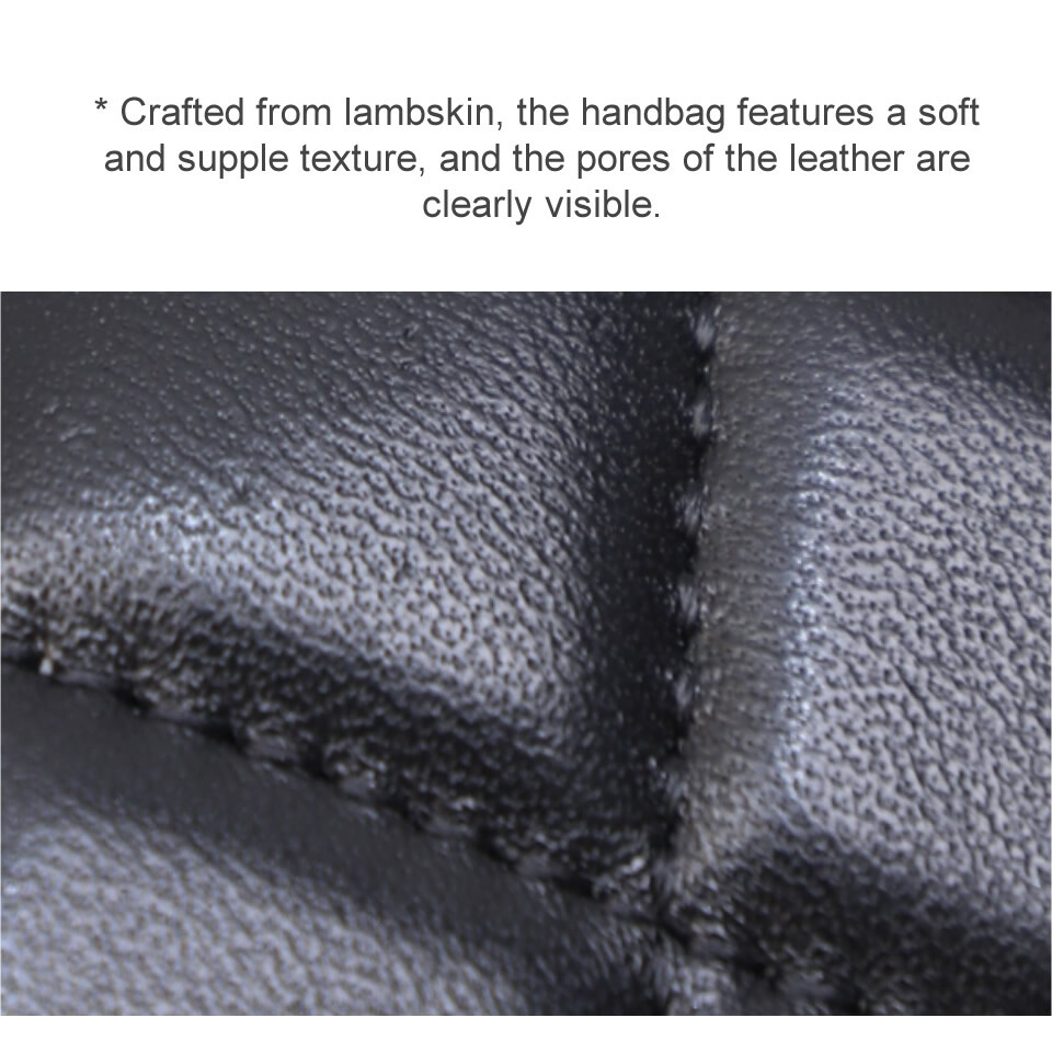Premium Lambskin Leather: The bag is made of high-quality lambskin leather with a fine and smooth texture, providing a soft and supple feel to the touch. The leather is also durable and resistant to wear and tear.