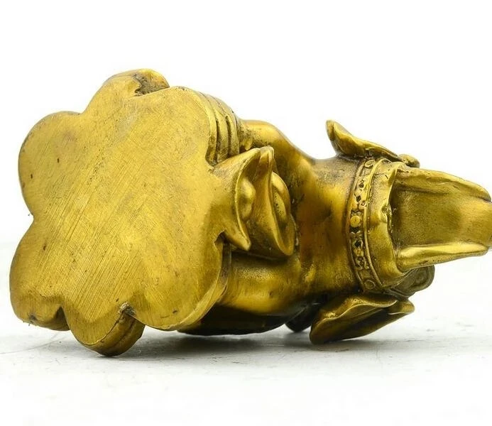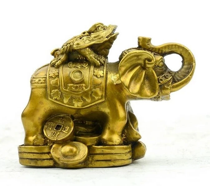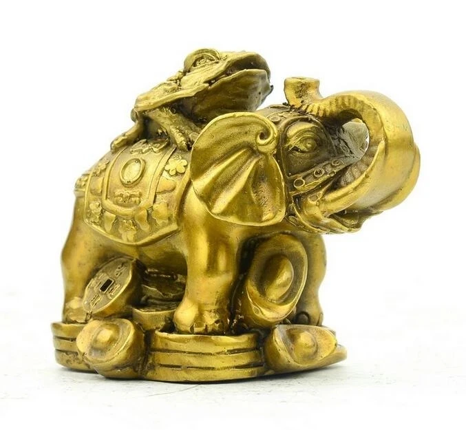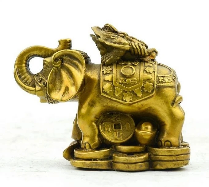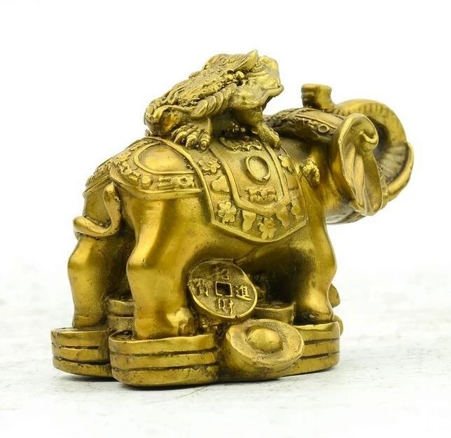 Rare Chinese manual hammer copper spittor elephant statue of peace