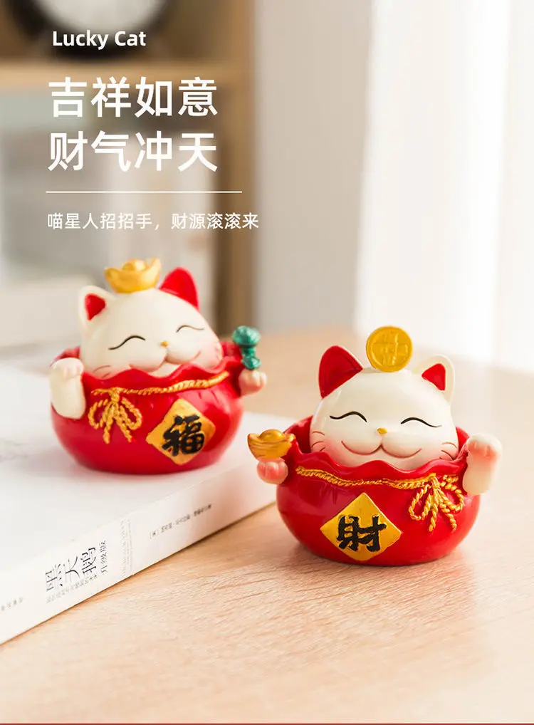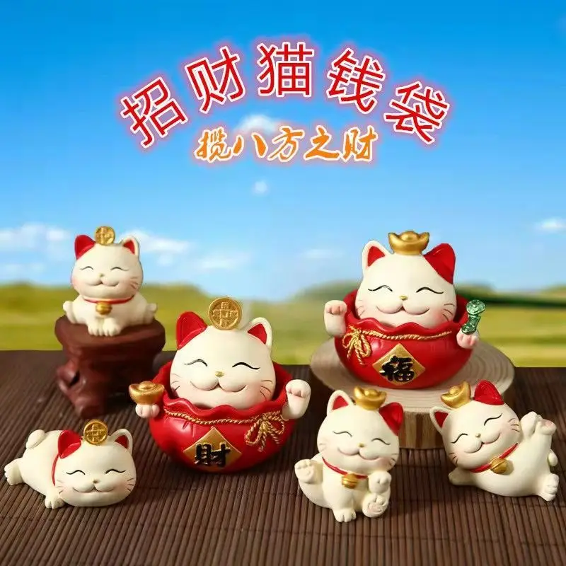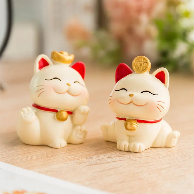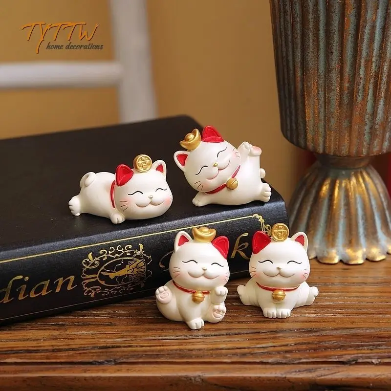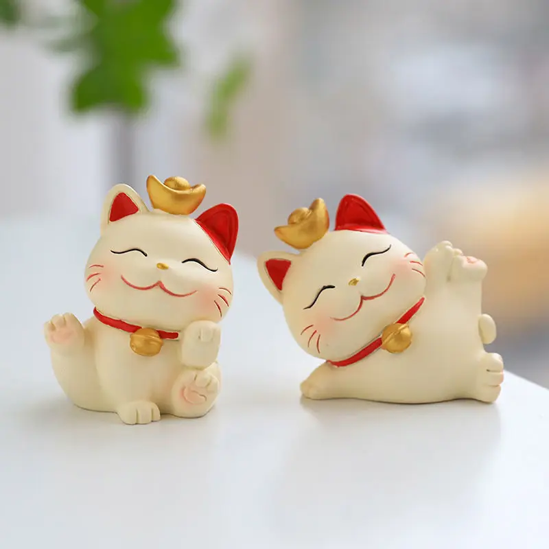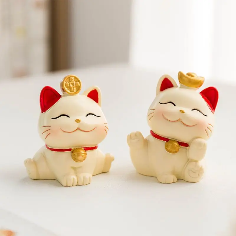 Resin Cartoon Fortune Cat Car Ornament Micro Landscape Bonsai Decoration Desktop Creative Trinket Home Accessories Figurines