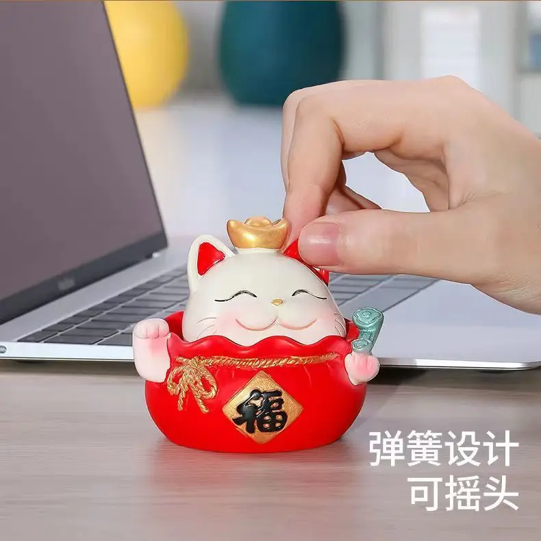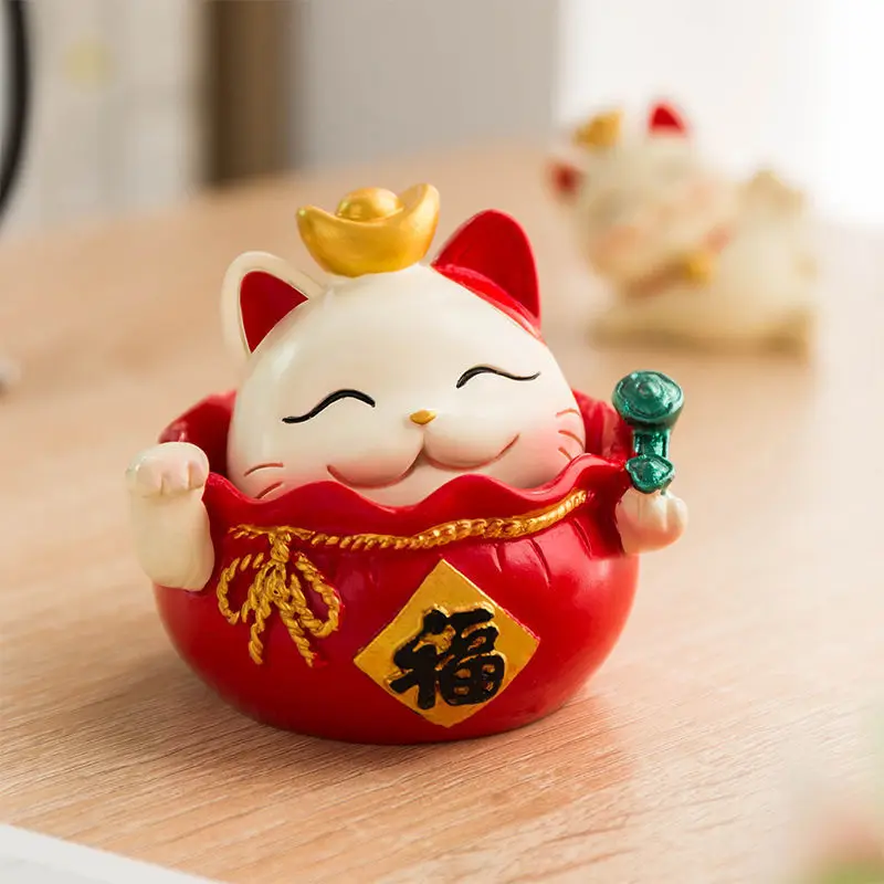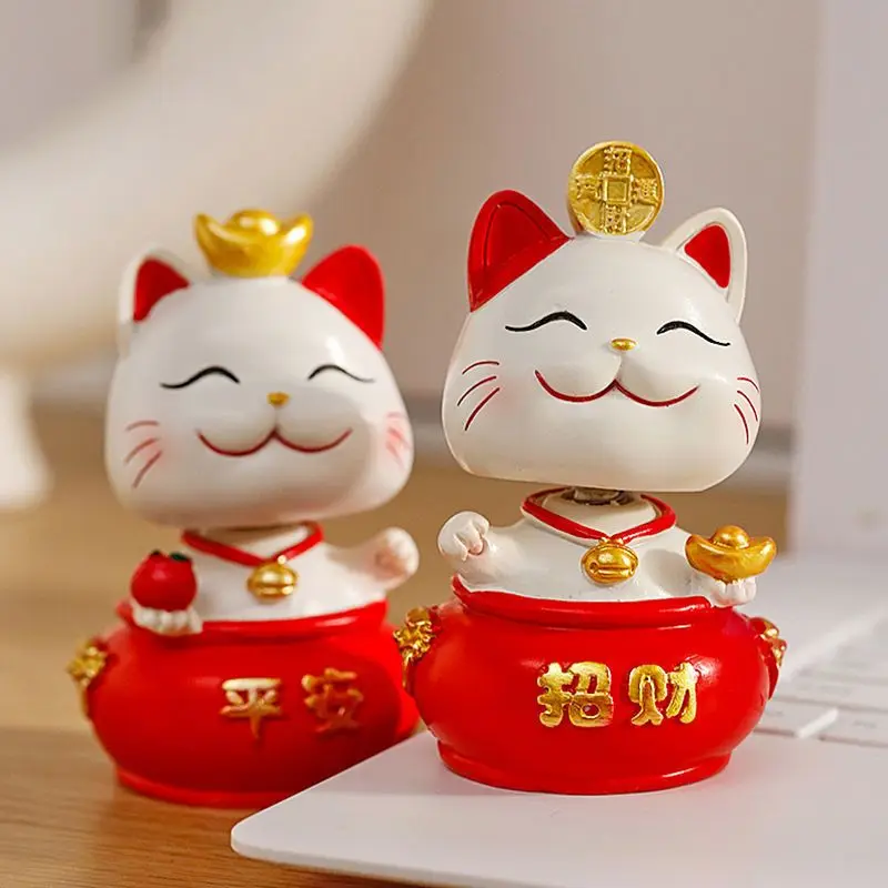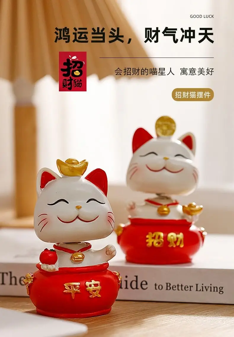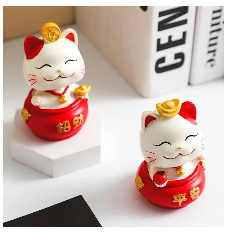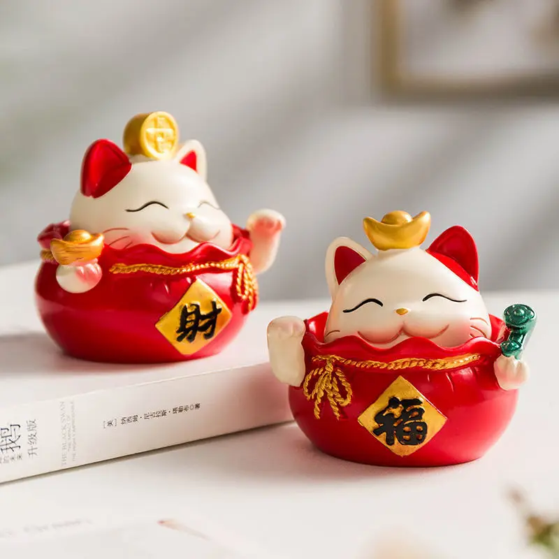 Resin Cartoon Fortune Cat Car Ornament Micro Landscape Bonsai Decoration Desktop Creative Trinket Home Accessories Figurines