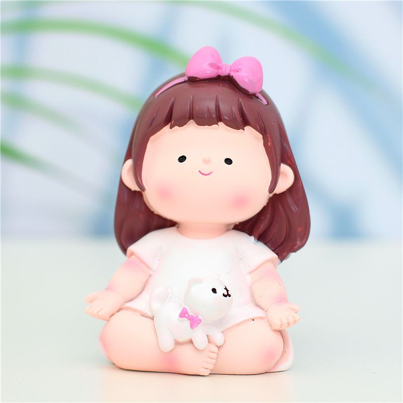 Resin Cartoon Sports Girl Car Ornament Micro Landscape Bonsai Decoration Desktop Creative Trinket Home Accessories Figurines