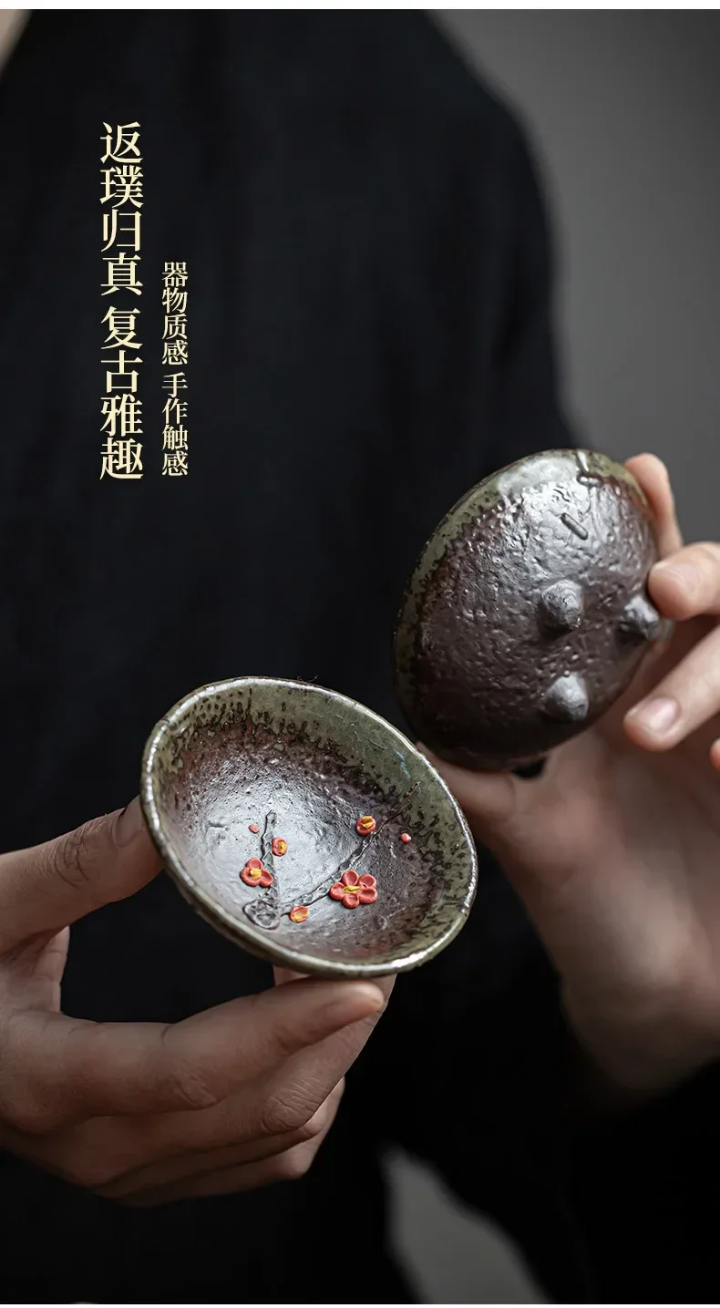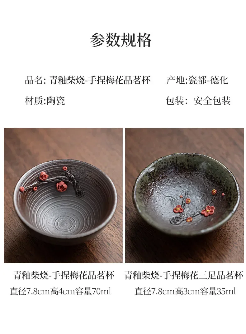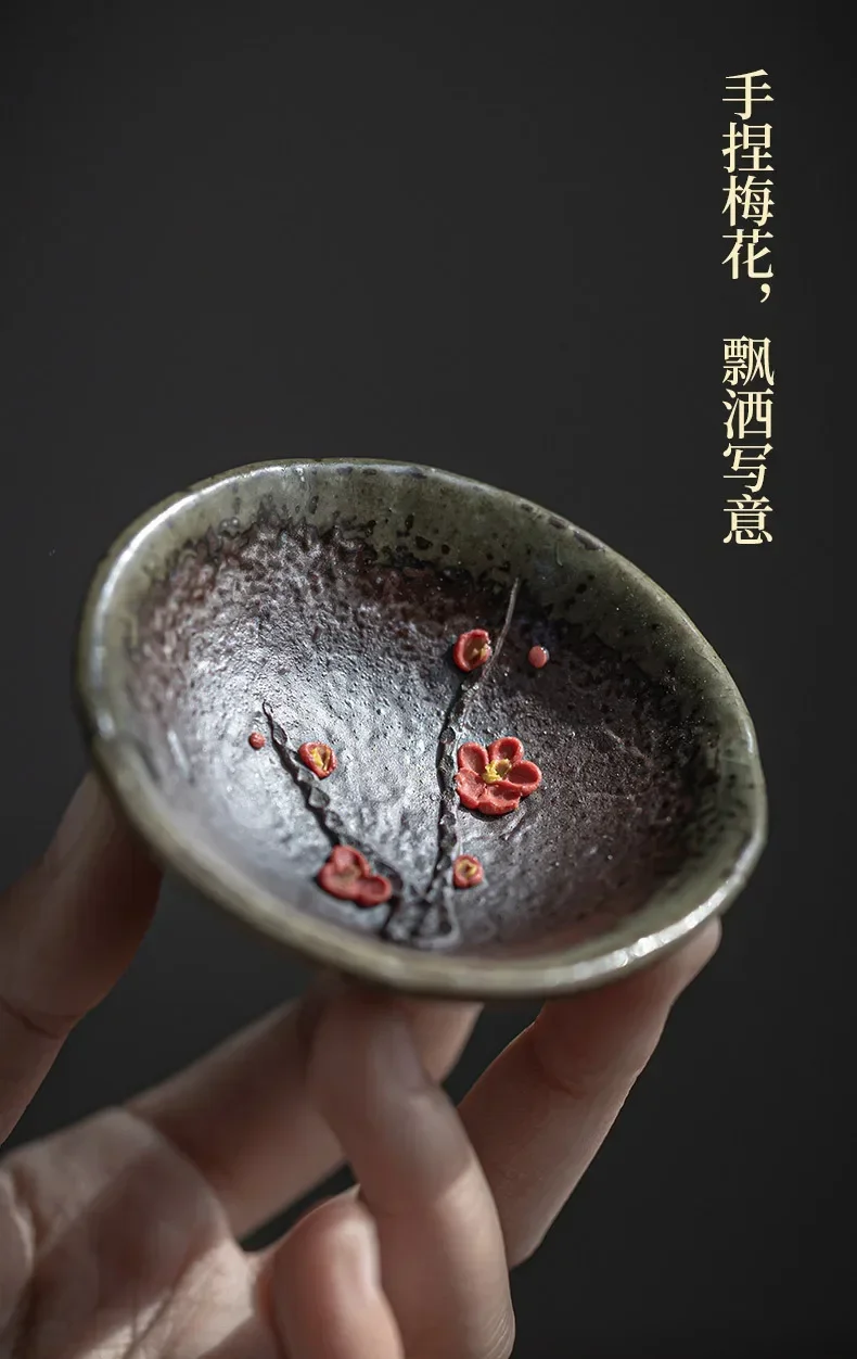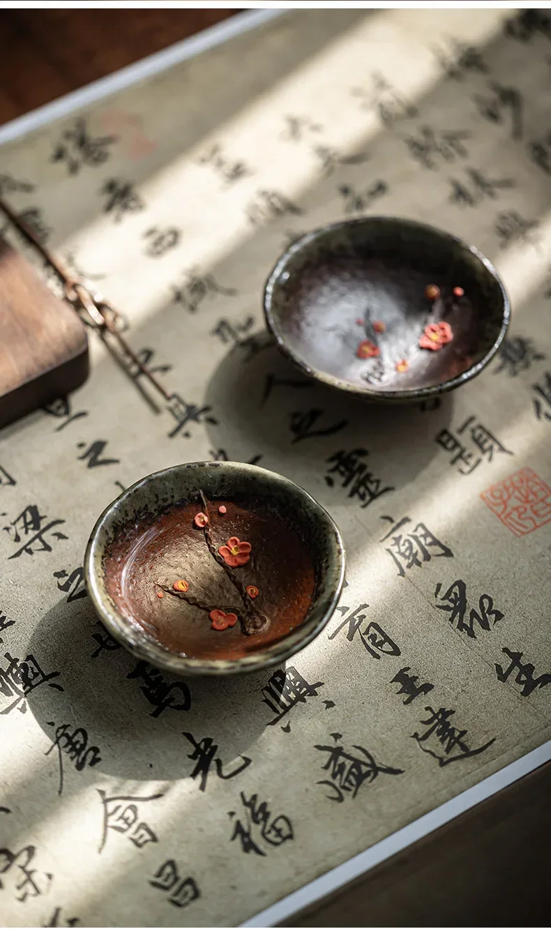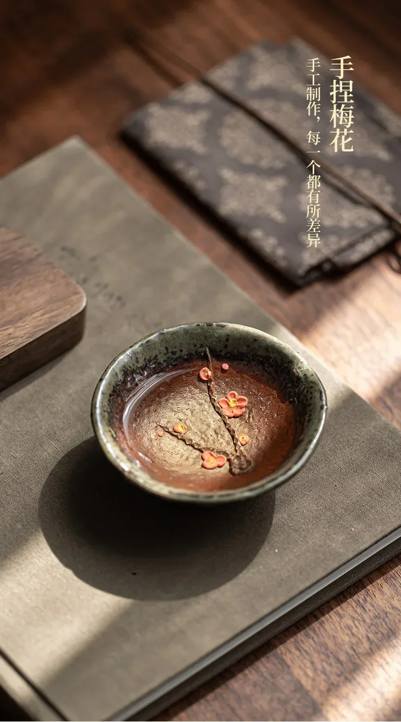 Retro Kung Fu Teacups Pottery Teaware Set Plum Blossom Tea Cups Home Decoration Chinese Handpainted Tea Bowls