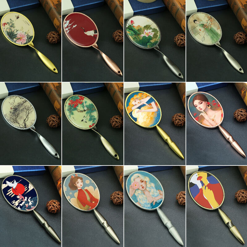 Retro Mirror with Handle Luxury Vintage Handheld European Style Makeup Mirror