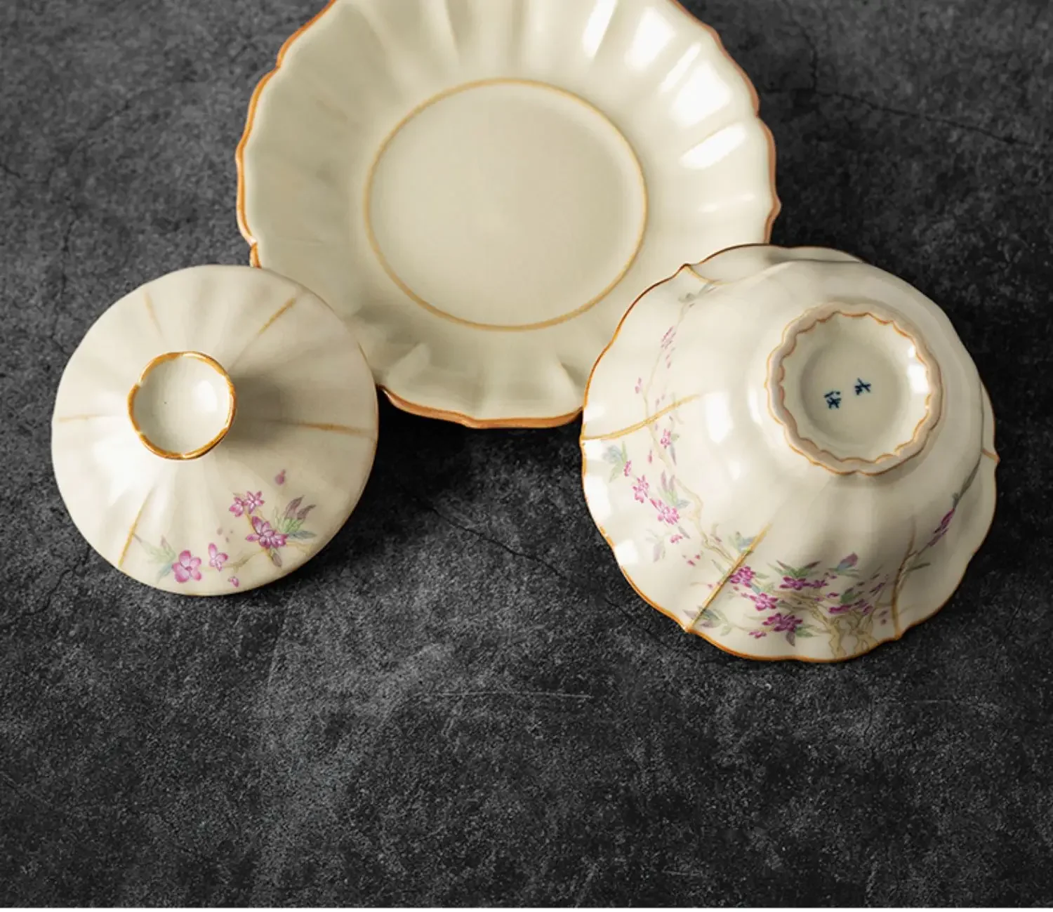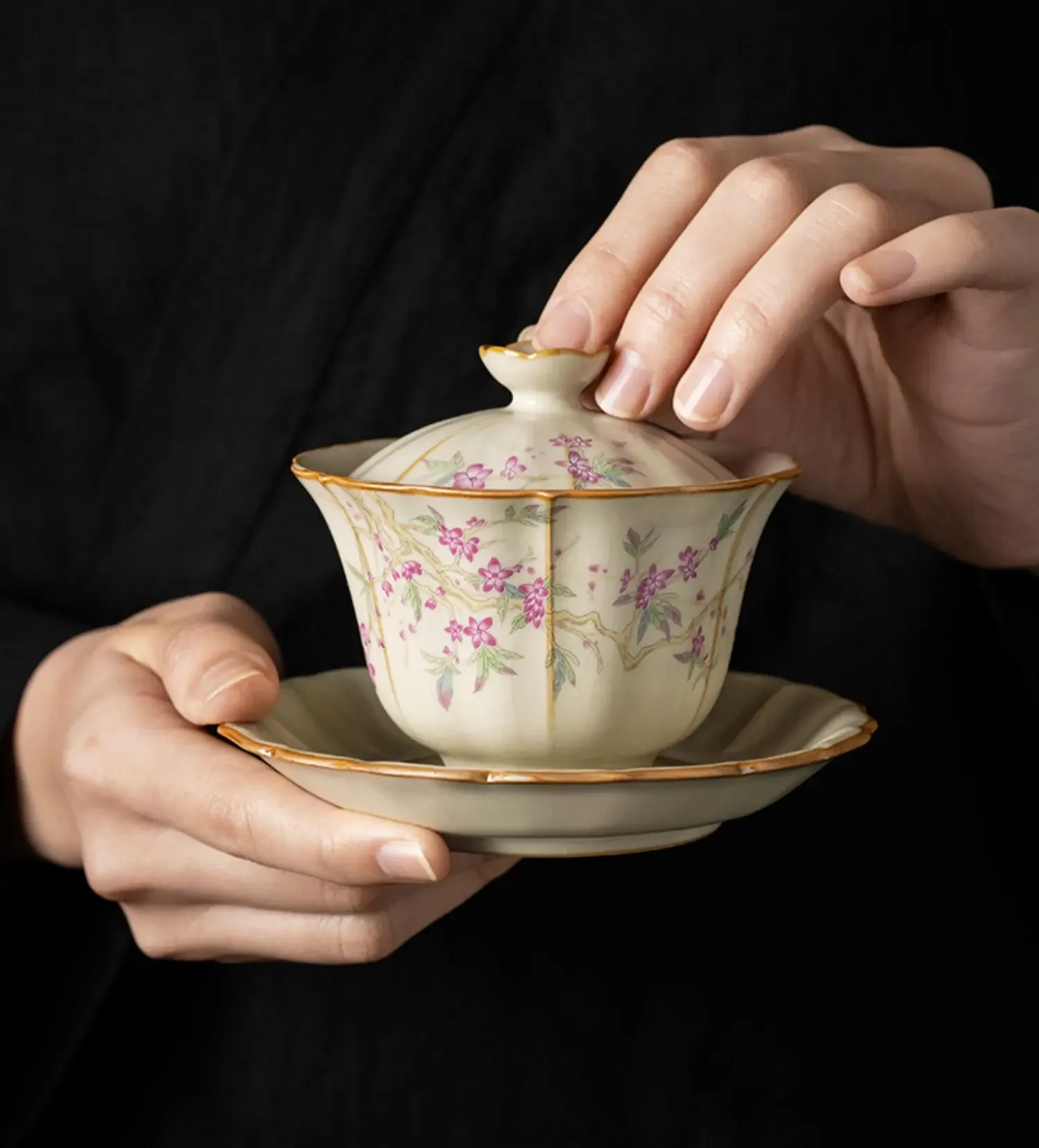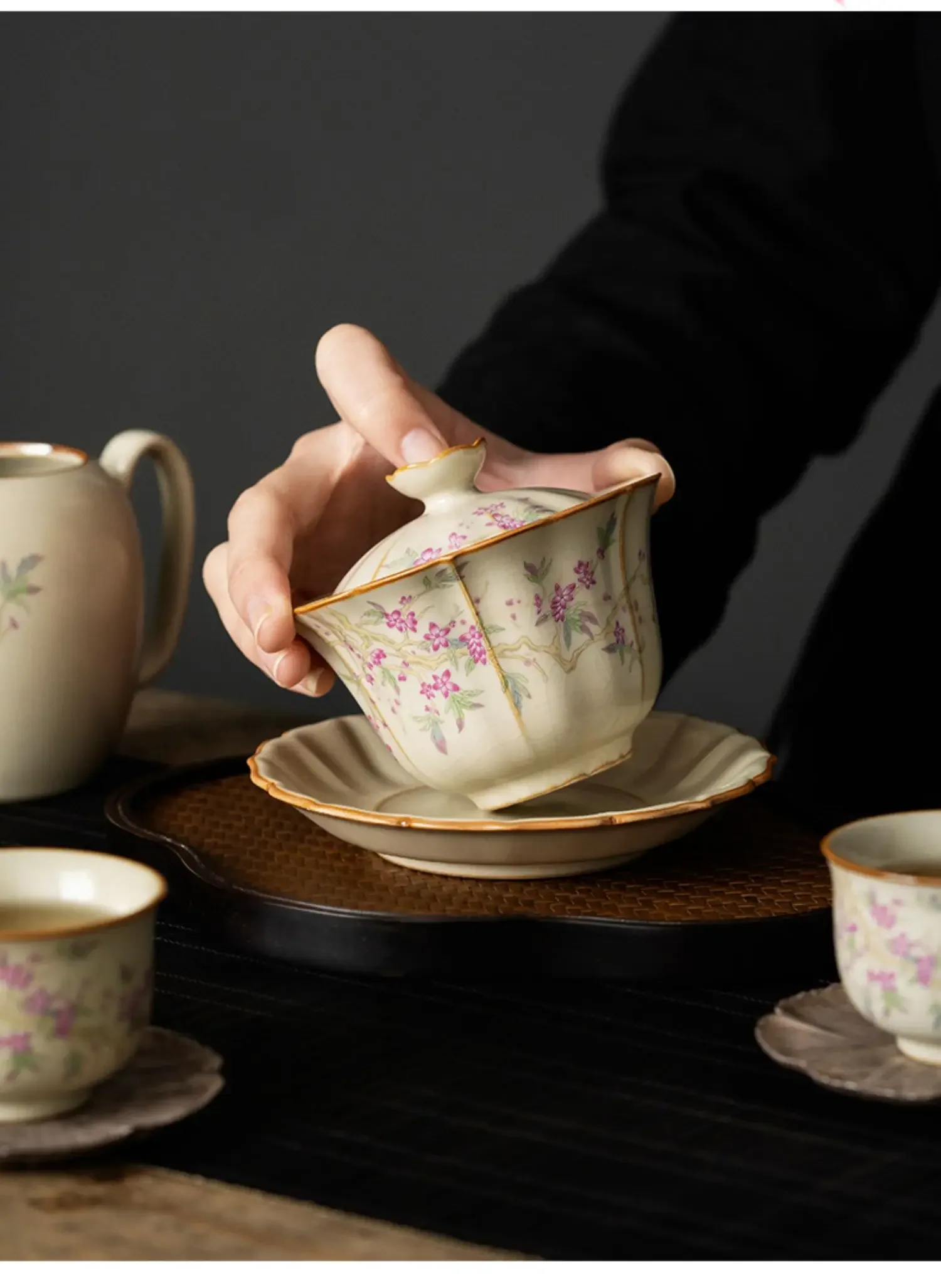 Retro Ru Kiln Tea Tureen Ceramic Sancai Cover Bowl Tea Maker Gaiwan Can Raise Kung Fu Teaware