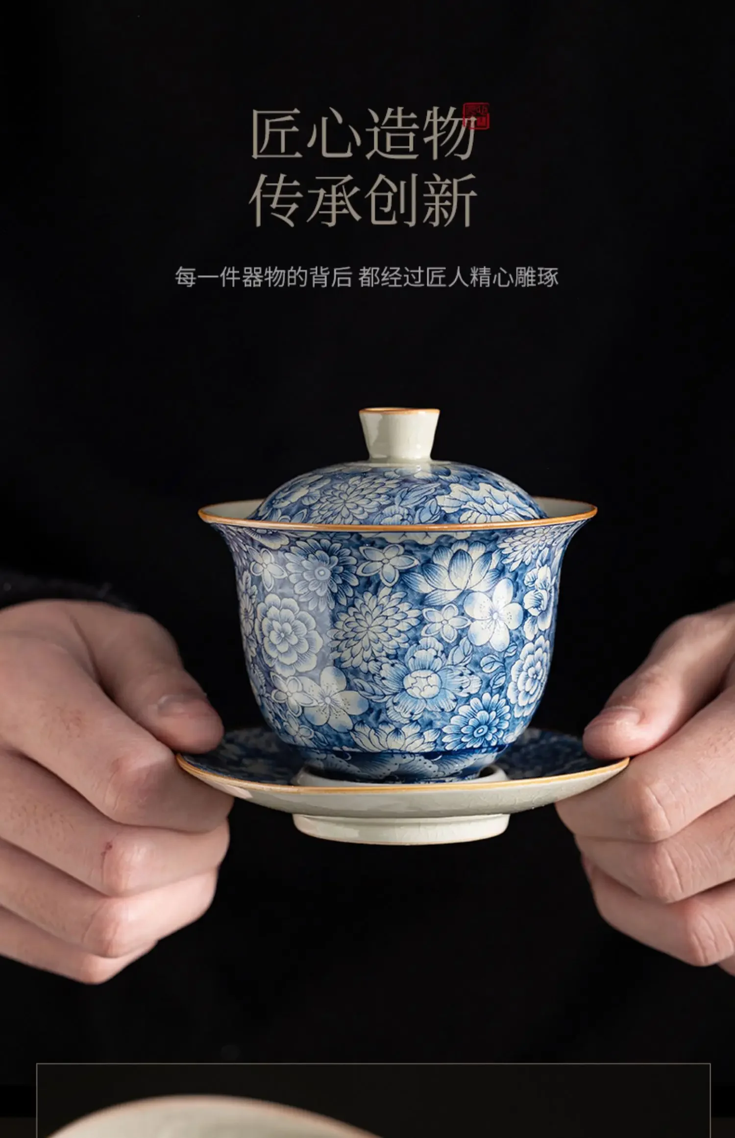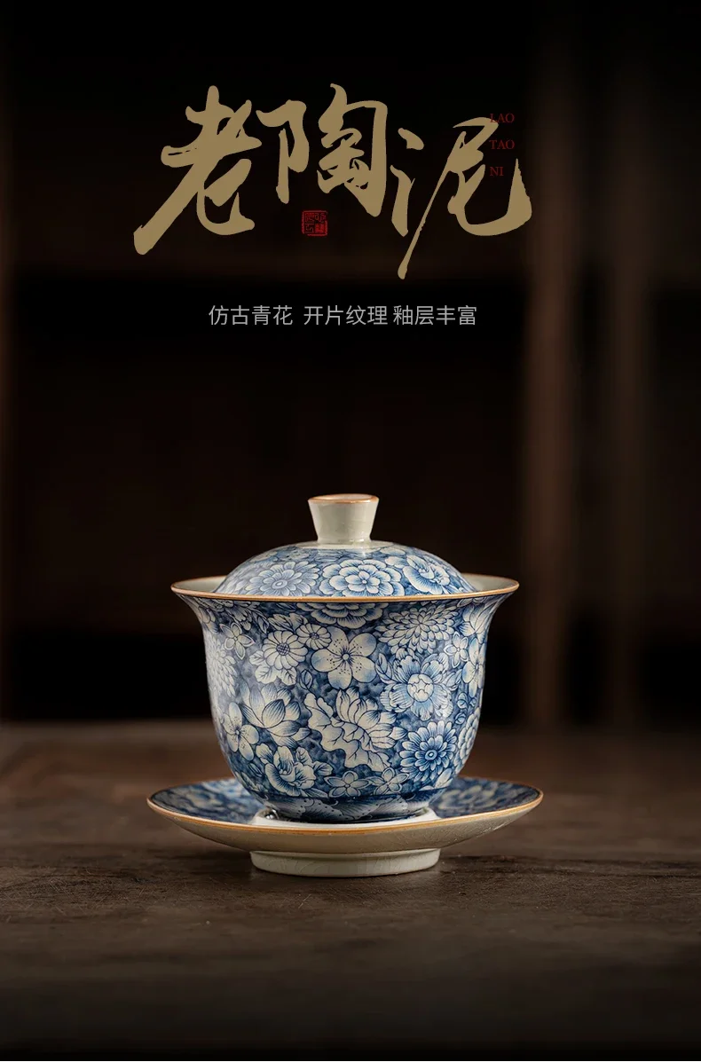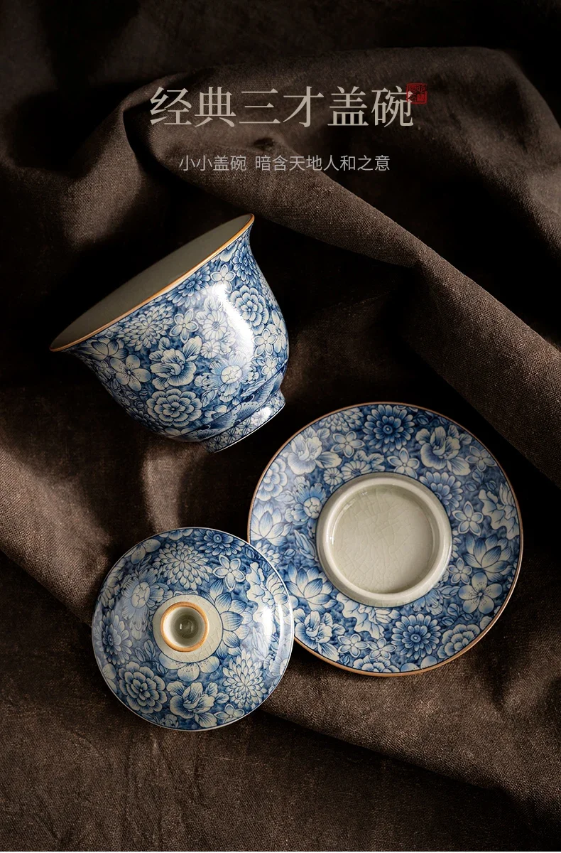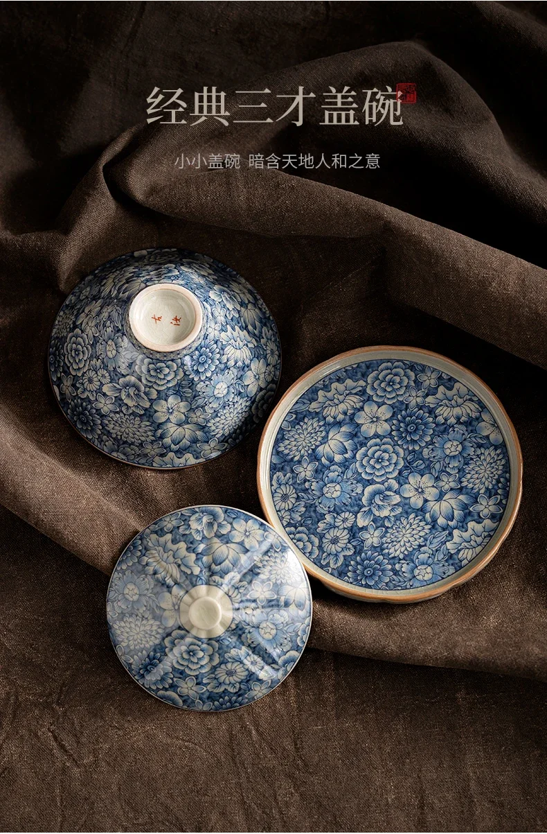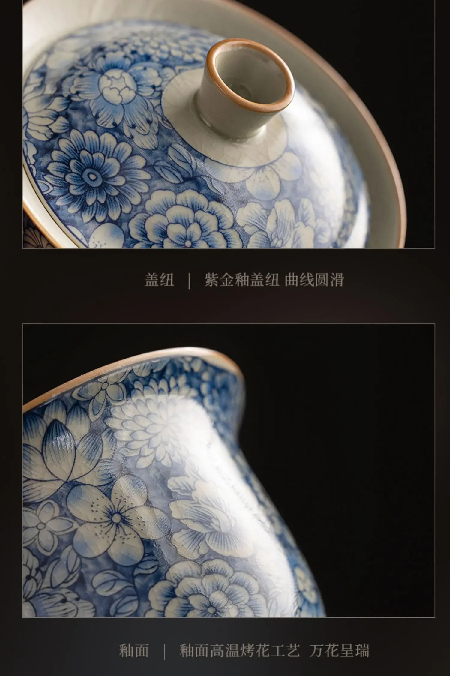 Retro Ru Kiln Tea Tureen Ceramic Sancai Cover Bowl Tea Maker Gaiwan Can Raise Kung Fu Teaware