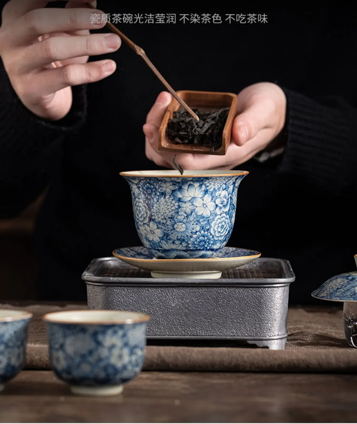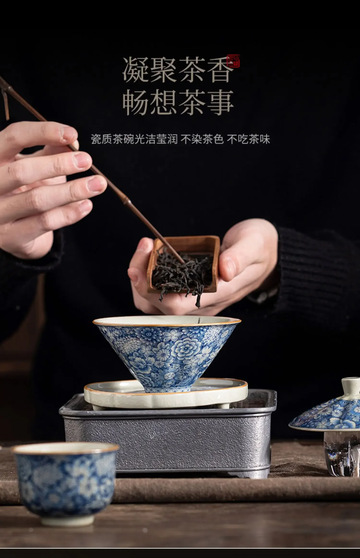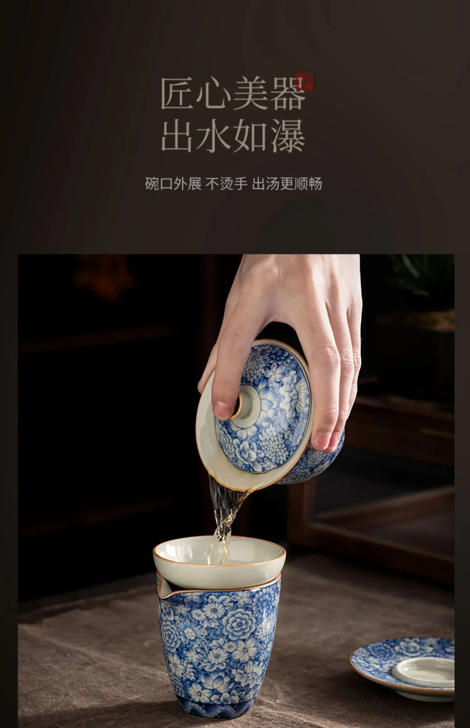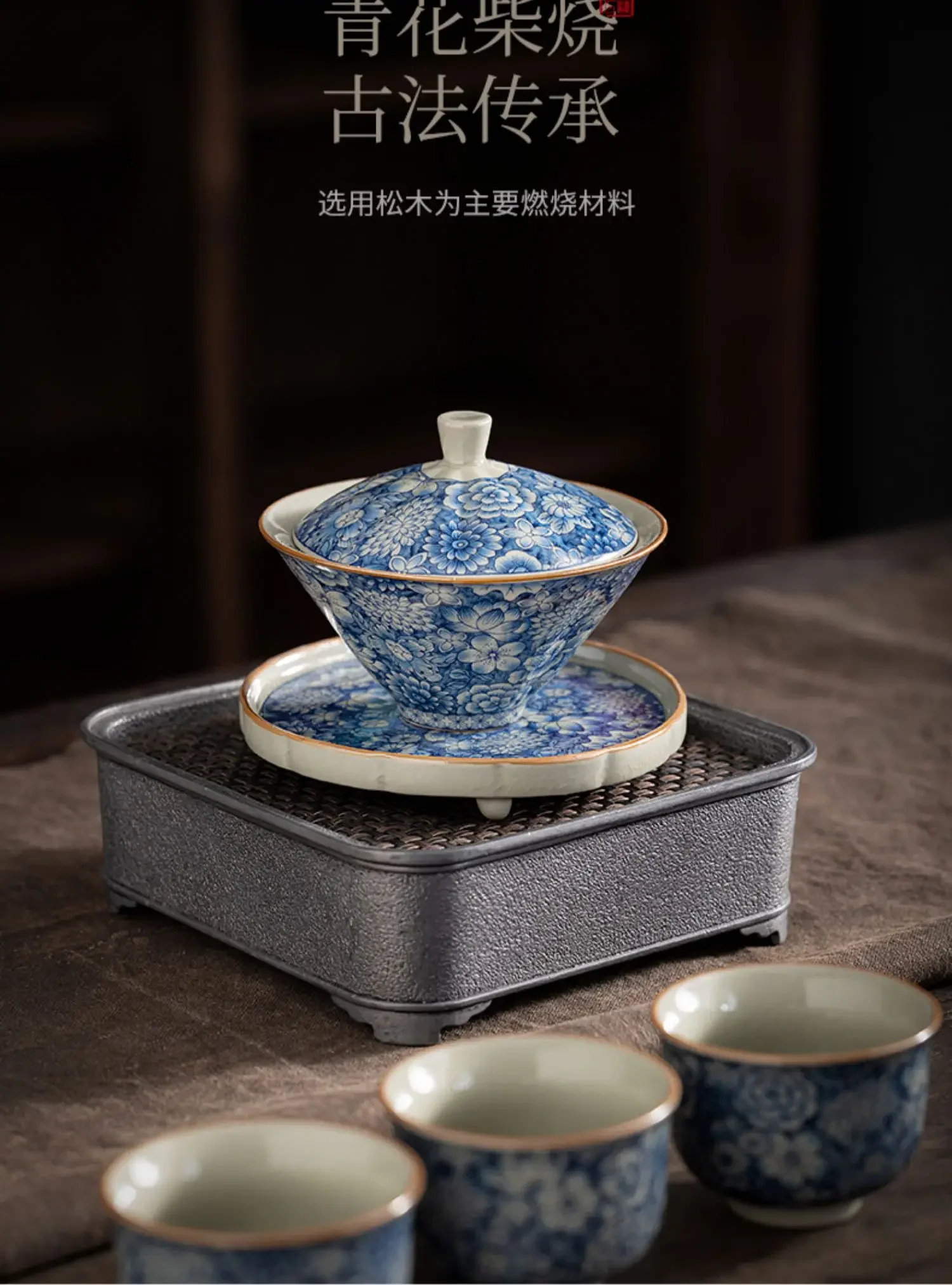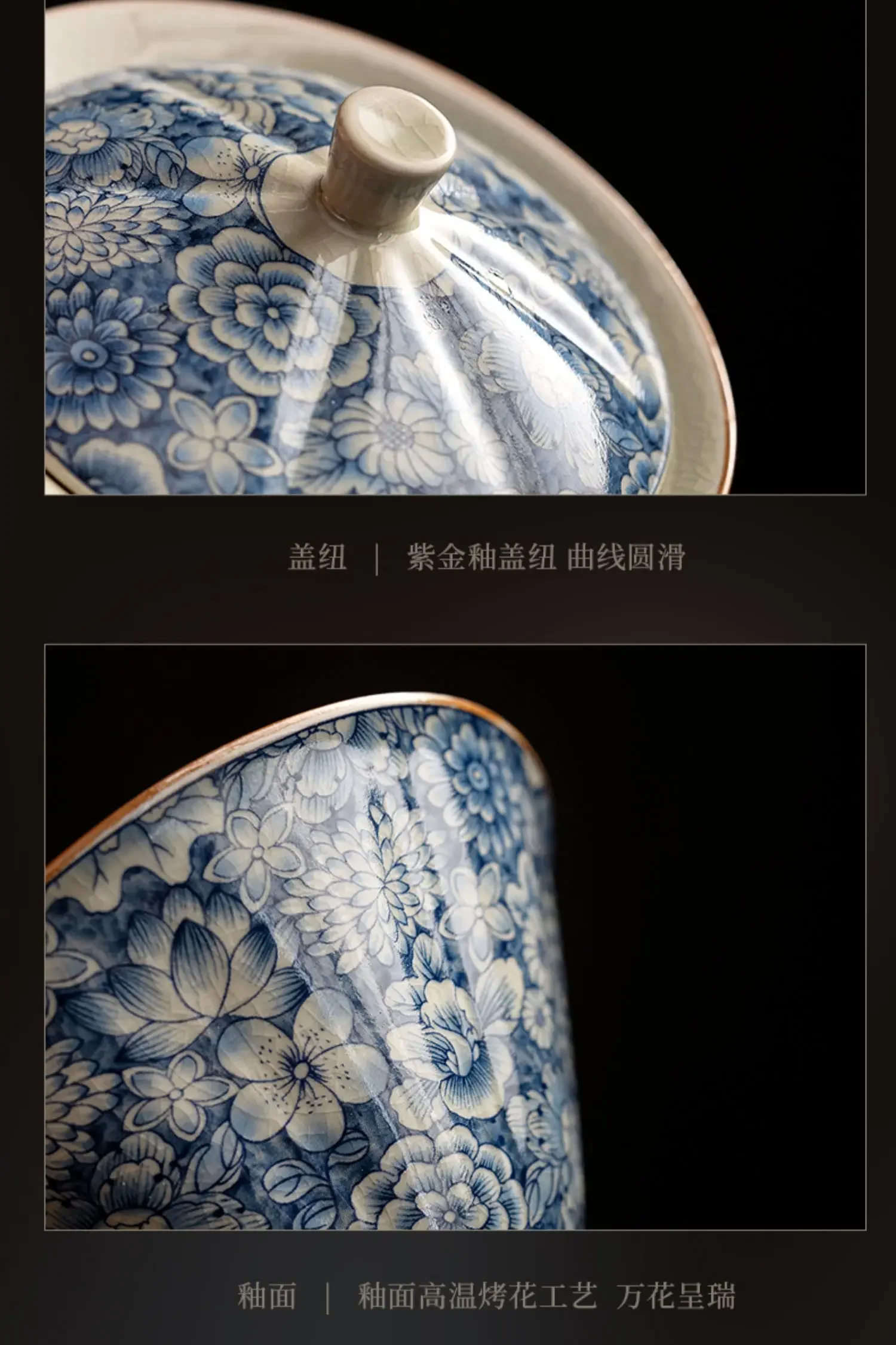 Retro Ru Kiln Tea Tureen Ceramic Sancai Cover Bowl Tea Maker Gaiwan Can Raise Kung Fu Teaware