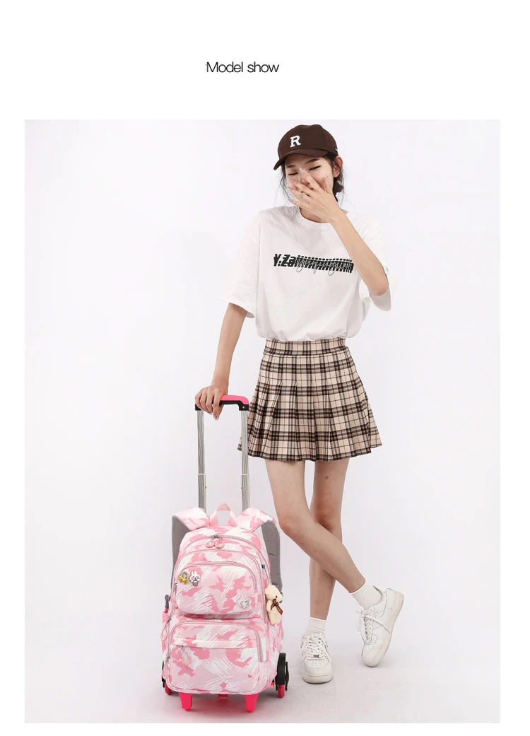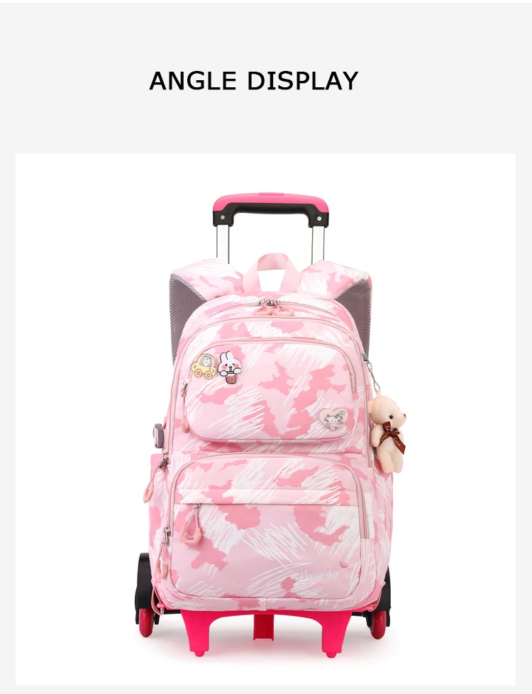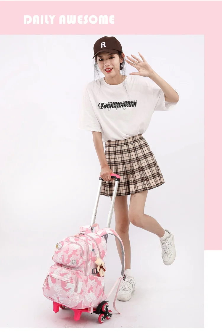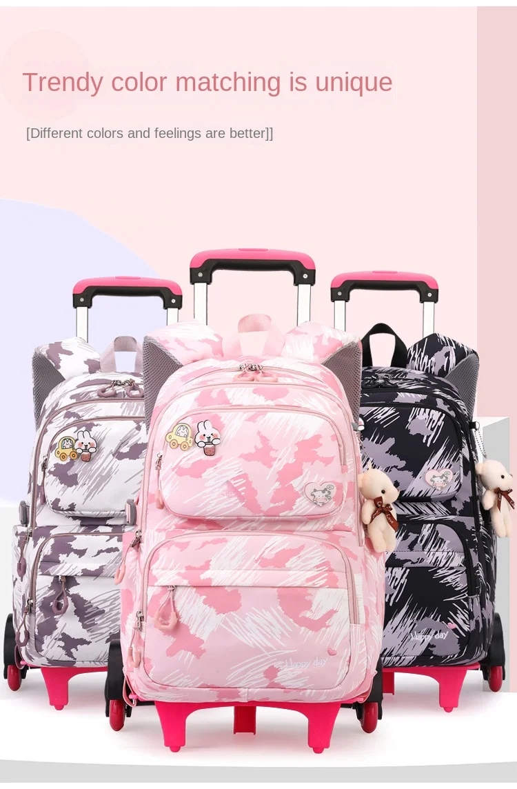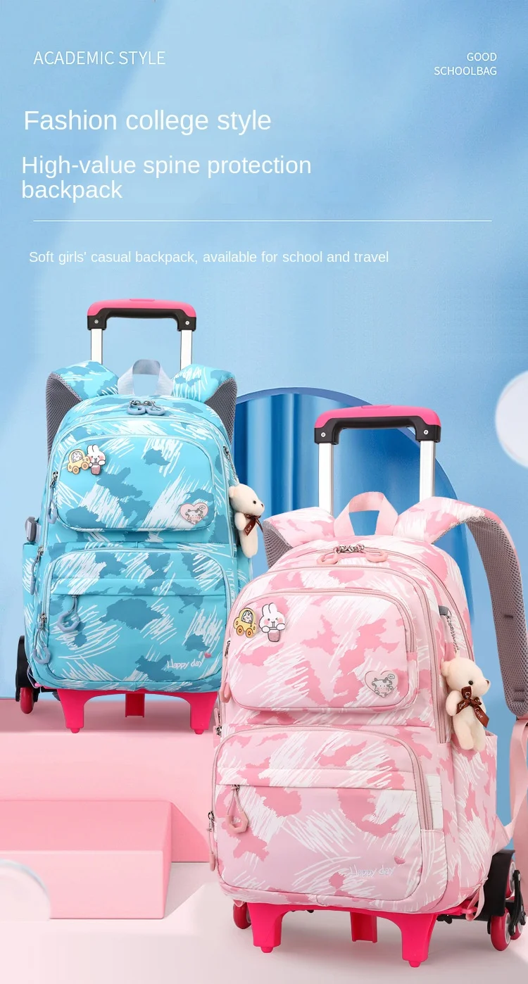 Rolling Wheeled Backpack Book Bags school Children School bag with Wheels Students Backpack For Girls Trolley Bag Cute Schoolbag