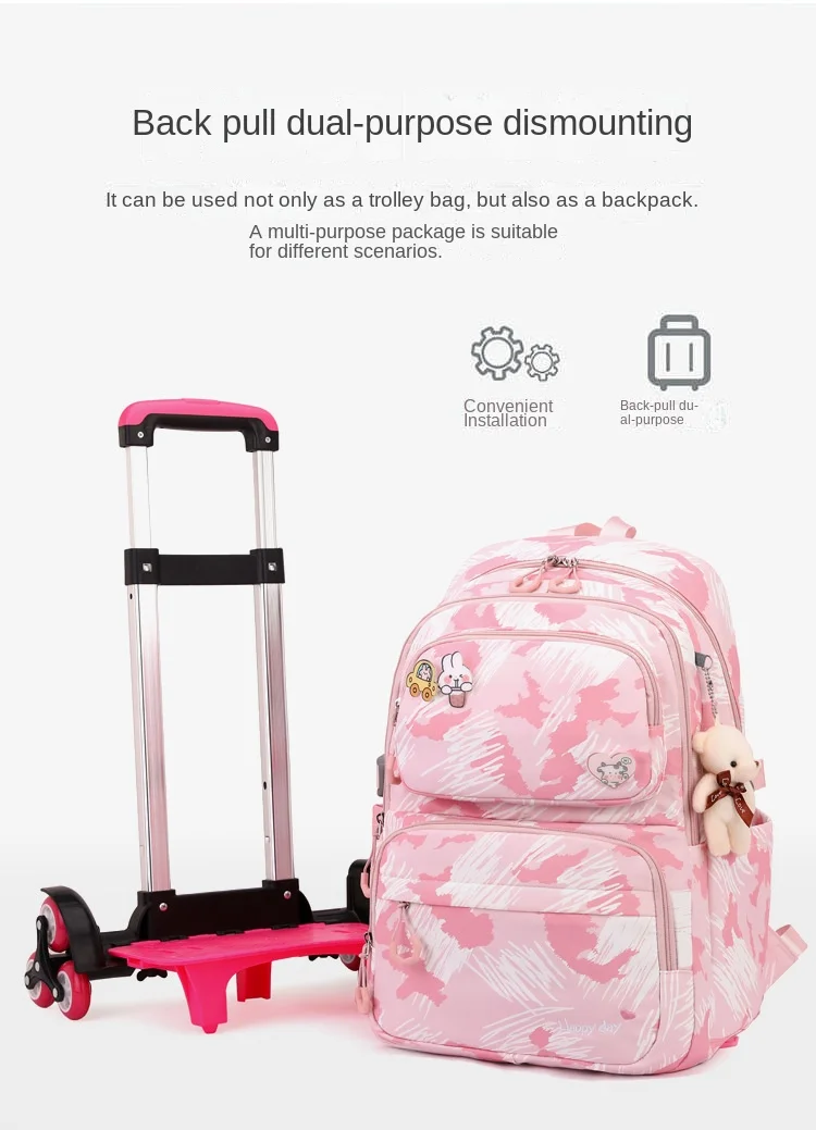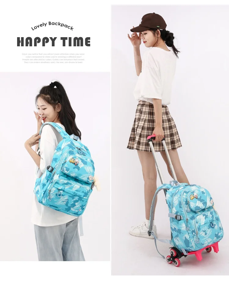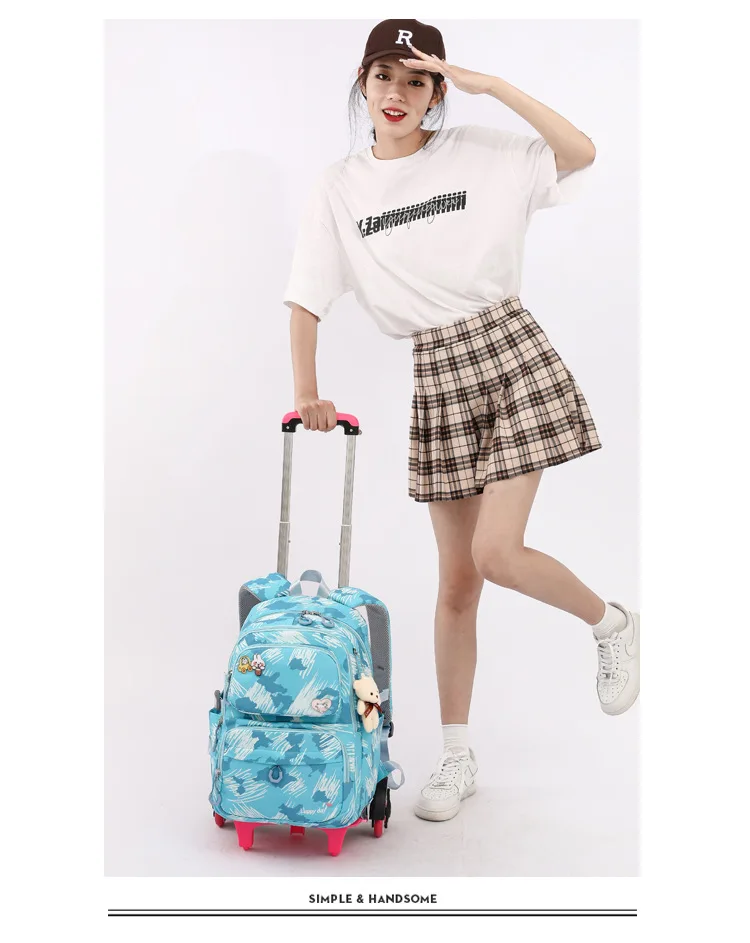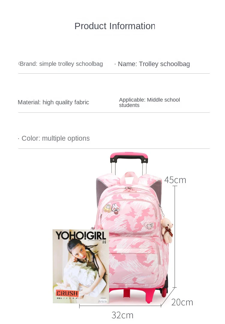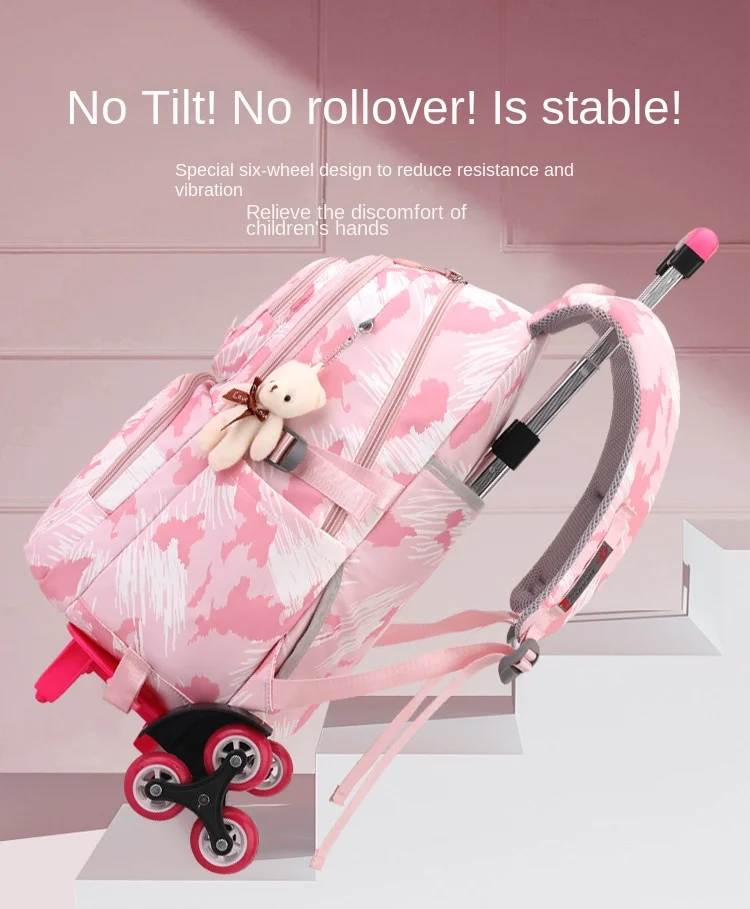 Rolling Wheeled Backpack Book Bags school Children School bag with Wheels Students Backpack For Girls Trolley Bag Cute Schoolbag