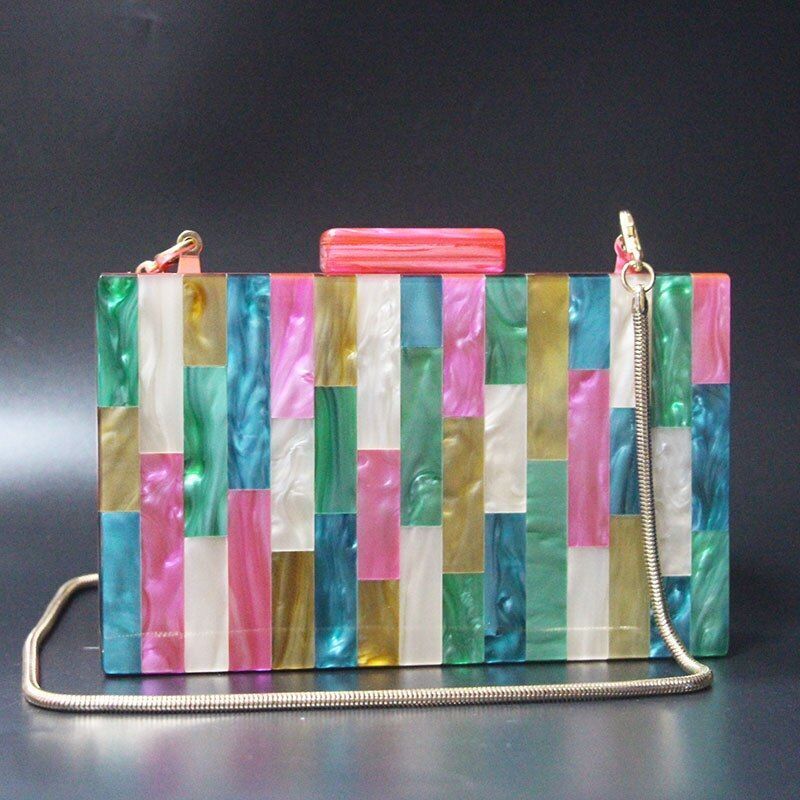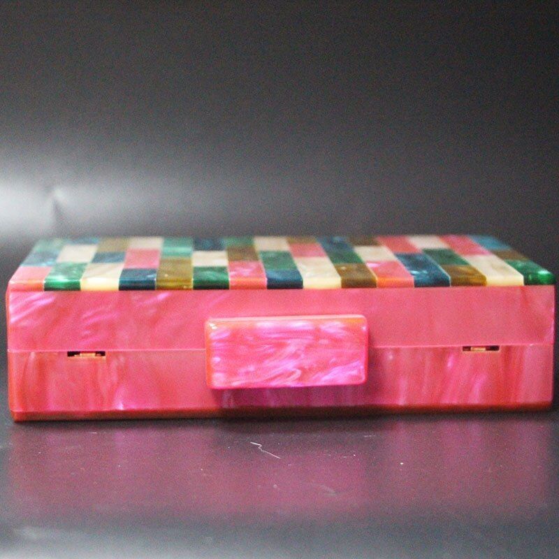 Rose Red Handmade Acrylic Clutch Glitter Bag Resin Chain Handbags 18*11*4.5 CM