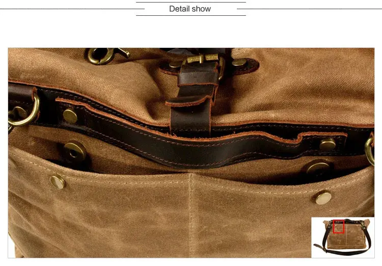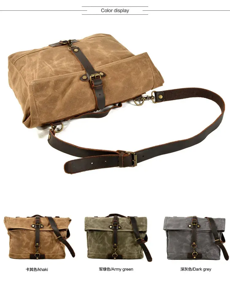 Ruil Men's canvas bag Vintage bag Waterproof Oil Wax Canvas Leather Shoulder Bags Messenger Bag