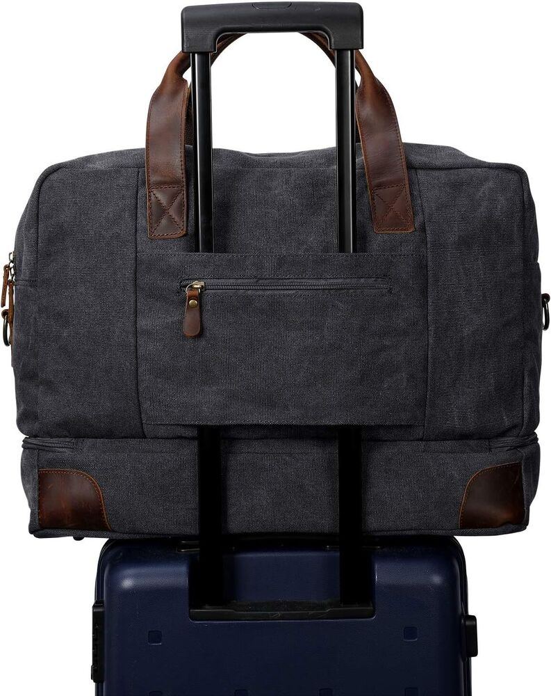 S-ZONE Mens Canvas Travel Duffel Bag Weekend Overnight with Dark Grey