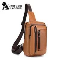 LAOSHIZI New Retro Genuine Leather Men's Chest Bag Leisure Fashion Messenger Bag Multifunctional Large-capacity Shoulder Bag