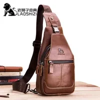 LAOSHIZI Brand Genuine Leather Men Chest Bag Retro Cowhide Men Casual Crossbody Bag Fashion Men's Handbag Male Shoulder Bag