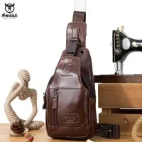 Luxury Men's Genuine Leather Chest Bag Leisure Fashion Crossbody Bag 100% Cowhide Men's Shoulder Bag USB Rechargeable Travel Bag