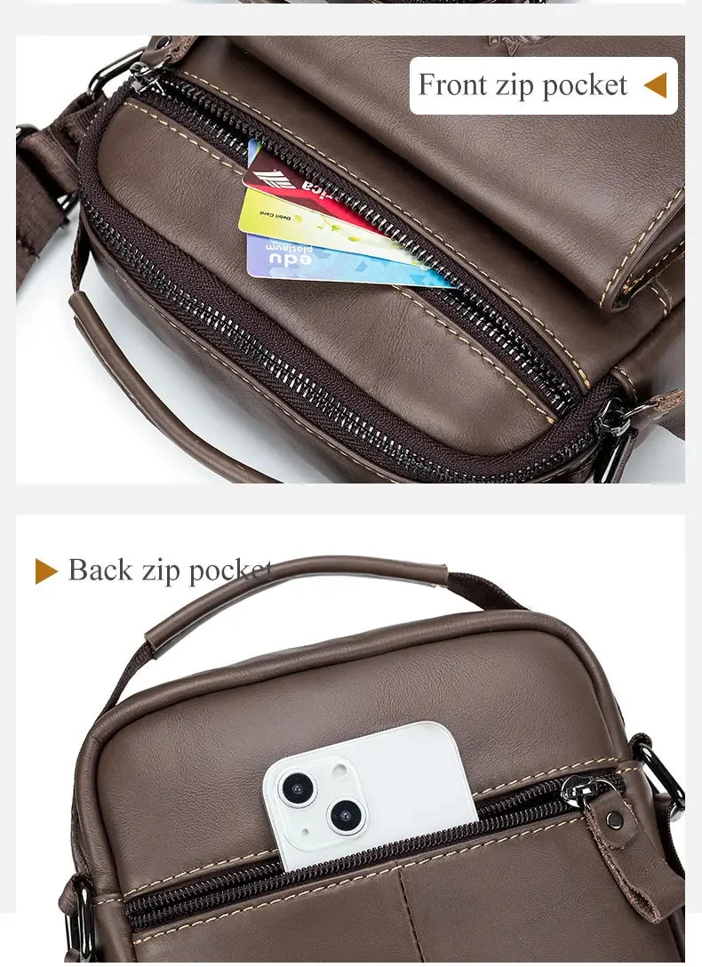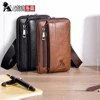 LAOSHIZI Crazy Horse Skin Men's Genuine Leather Purse Multifunctional Small Shoulder Bag Leisure Crossbody Bag Mobile Phone Bag
